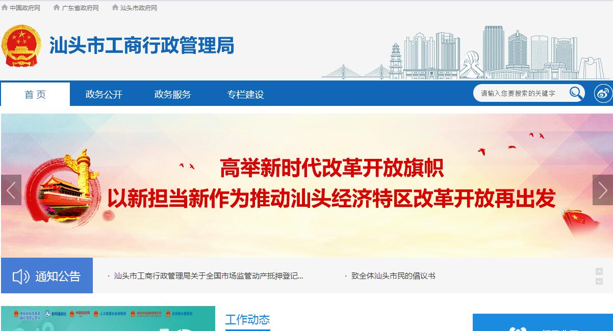 汕头市工商行政管理局主要职责:(一)贯彻执行国家、省和市有关工商行政管理的方针政策和法律法规,起草有关地方性法规、规章草案和规范性文件,拟订有关政策并组织实施,负责市场监督管理和行政执法有关工作。(二)负责市场主体登记的管理工作,推进工商注册制度便利化,组织指导全市各类企业、个体工商户、农民专业合作社和从事经营活动的单位、个人以及外国(地区)企业常驻代表机构等市场主体的登记注册,组织实施全市统一标准规范的电子营业执照和全程电子化工商登记管理;研究分析并依法发布市场主体登记注册基础信息,为政府决策和社会公众提供信息服务。(三)组织指导对全市各类企业、个体工商户、农民专业合作社和从事经营活动的单位、个人以及外国(地区)企业常驻代表机构等市场主体及经营行为的监督管理,依法组织查处取缔无照经营行为。(四)承担市场主体信用分类监督管理,组织市场主体开展年度报告和信息公示工作,组织开展企业公示信息抽查工作,为社会公众提供市场主体信用查询和信用预警等服务。(五)承担对流通领域市场行为的风险监测分析和市场交易风险防范,建立并实施重要商品及生产资料的风险评估指标体系、风险监测预警和跟踪制度、风险管理防控联动机制。(六)负责拟订便利营商的措施、办法并组织实施;拟订促进优化营商环境的具体措施、办法并组织实施;支持企业经营模式和产业转型升级,服务中小微企业、个体工商户发展和转型升级,推动各类市场主体登记后持续健康发展;协助开展全市非公有制经济组织党建工作。(七)负责依法规范和维护商品交易市场经营秩序工作,负责组织监督管理商品交易市场经营行为。负责监督管理和规范网络商品交易及有关服务行为,促进网络商品交易市场健康发展。(八)组织管理商标和特殊标志,依法保护商标专用权,查处商标侵权等违法行为,监督管理商标印制和商标代理,组织实施商标品牌战略。(九)指导广告业发展,负责广告活动的监督管理工作,承担公益广告的规划和有关管理,组织广告业统计工作,查处广告违法行为。(十)依法监督管理经纪人、经纪机构及经纪活动;依法组织实施合同行政监督管理,负责管理动产抵押登记,监督管理拍卖行为,依法查处合同欺诈等违法行为。(十一)依法组织查处不正当竞争、走私贩私等经济违法行为。(十二)依法组织查处违法直销、传销案件,依法监督管理直销企业和直销员及其直销活动,协调打击传销联合行动。(十三)负责消费维权及社会监督体系建设工作。负责流通领域商品质量及有关服务监督管理,统筹管理和组织开展全市流通领域商品及有关服务抽查检验工作;指导消费者咨询、投诉、举报受理与处理工作,指导消费者权益保护社会网络体系建设,查处违反商品质量法规及商品消费和服务领域中侵害消费者合法权益的行为,依法保护消费者合法权益,促进市场交易环境和消费维权政社共治。(十四)负责与行政执法部门的执法协作工作,做好与司法的衔接工作。(十五)指导全市工商行政管理业务工作,组织指导全市工商系统干部培训、素质教育相关工作,指导全市工商系统规范化建设和全市工商部门行政效能、政风行风建设,负责全市工商系统信息化建设相关工作。(十六)承办市人民政府和上级工商行政管理局交办的其他事项。