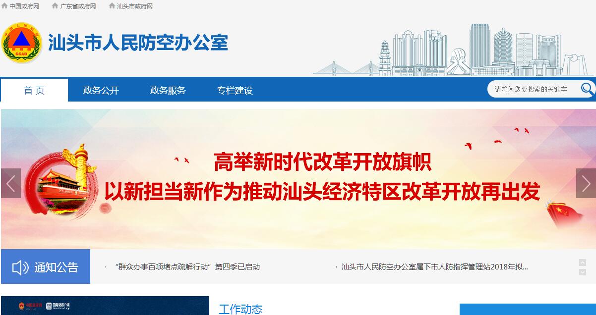 根据汕头市人民政府《印发汕头市人民防空办公室主要职责、内设机构和人员编制规定的通知》(汕府办〔2010〕39号)规定,汕头市人民防空办公室,正处级,为市政府人民防空工作的主管部门。其主要职责:(一)贯彻执行国家、省、市人民防空工作的有关法律、法规和方针、政策;起草有关地方性法规、规章草案、拟订人民防空发展规划和工作计划并组织实施。(二)会同有关部门拟订人民防空建设规划;拟订人民防空工程规划;审核指导城市总体规划和重要经济目标中人民防空要求的落实情况;检查监督城市人民防空建设。(三)组织管理人民防空工程建设;实施人防工程防护标准和质量标准;对结合民用建筑修建防空地下室实施计划、技术质量管理和监督检查;有计划地运用易地建设费建筑人防窗口、骨干工程;组织实施人防工程的维护管理和平时开发利用;对人民防空工程实施监督、检查和行政执法。(四)拟订城市防空袭方案;组织建设和管理人民防空指挥工程;拟订战时人口疏散计划并协调与疏散区域的关系;会同有关部门拟订重要经济目标防护方案,检查、督促重要经济目标单位落实防护措施;战时组织城市人民开展防空袭斗争。(五)制订人民防空通信警报建设规划并组织实施;制定防空警报试鸣制度并定期组织试鸣;实施人民防空通信网络的建设和管理。(六)负责人民防空的宣传教育工作,会同有关部门普及人民防空知识和技能;组织人民防空科学技术研究,监督管理和实施人民防空技术标准;组建人民防空专业队伍,组织专业训练。(七)管理人防经费和资产,监督检查其使用情况。(八)承办市委、市政府、市国防动员委员会以及上级军事和主管部门交办的其他事项。