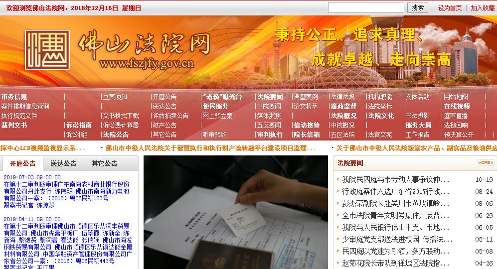 佛山市中级人民法院自1950年建院以来,紧紧围绕党在不同时期的中心任务,履行司法职责,维护公平正义,化解矛盾纠纷,创新社会管理,以“让人民群众在每一个司法案件中感受到公平正义”为目标,抓党建、带队建、促审判,深化改革创新,各项工作稳步推进,为推动社会主义民主法治建设和促进经济社会全面发展进步做出了积极的贡献。佛山市中级人民法院现有纪检监察室、政治处、执行局、办公室、审判管理办公室、立案庭、刑一庭、刑二庭、未成年人案件审判庭、民一庭、民二庭、民三庭、民四庭、民五庭、行政审判庭、审判监督庭、法律研究室、司法行政装备管理科、法警支队共十九个部门。辖区有禅城区、南海区、顺德区、三水区、高明区五个基层人民法院,30个人民法庭。近年来,佛山市中级人民法院坚持“服务大局,为民司法,科学发展,全面实现和确保司法公正”这一工作思路,倾力做好审判工作、队伍建设和法院改革“三件大事”。2017年,全市法院共受理各类案件214476件,办结182334件,同比分别增长9.1%和10.4%,结收比达99.7%。市中院共受理各类案件27062件,办结24922件,同比增长10.7%和11.2%。在全市法院审判力量仅占全省不到十四分之一的情况下,审结案件数及解决诉讼标的金额约占全省的九分之一,法官人均办案281件,同比增长35.7%。佛山市中级人民法院着力打造以“秉持公正、追求真理、成就卓越、走向崇高”为核心的法院文化,法院精神文化、物质文化、行为文化和制度文化全面发展。目前,佛山市中级人民法院共有干警543人,其中法官135人,法官队伍中本科以上学历比例占100%,获得硕士以上学位比例占63.5%,博士及在读博士有6人,队伍平均年龄为36岁。同时,还涌现出以“2005中国法官十杰”、“全国模范法官”、“2006中国十大法治人物”黄学军同志为典型代表的一大批优秀法官。年纪轻、学历高已成为佛山市中级人民法院法官队伍的显著特色。佛山市中级人民法院积极推进改革创新,率先提出以“结收比”取代“结案率”指标,全面动态分析审判工作运行态势,得到最高法院的肯定;推动市委常委会讨论通过了《关于加强人民法院执行工作的意见》,形成了“党委领导、政府支持、法院主导、各有关部门参与”的大执行工作格局;不断完善镇街综治信访维稳中心机制,指导各区法院在交警部门、劳动仲裁所、派出所等部门分别派驻交通、劳动、社区巡回法庭,努力将纠纷解决在基层,化解在诉前状态,较好地实现了法律效果与社会效果的统一;推行行政案件和知识产权案件集中管辖试点改革,积极探索和完善审判运行机制。 在建设社会主义和谐社会的壮阔事业里,佛山市中级人民法院将以审判执行为中心,以改革创新为动力,以审判管理为抓手,以公正司法为目标,全面加强法院各项工作,争当法院科学发展排头兵。