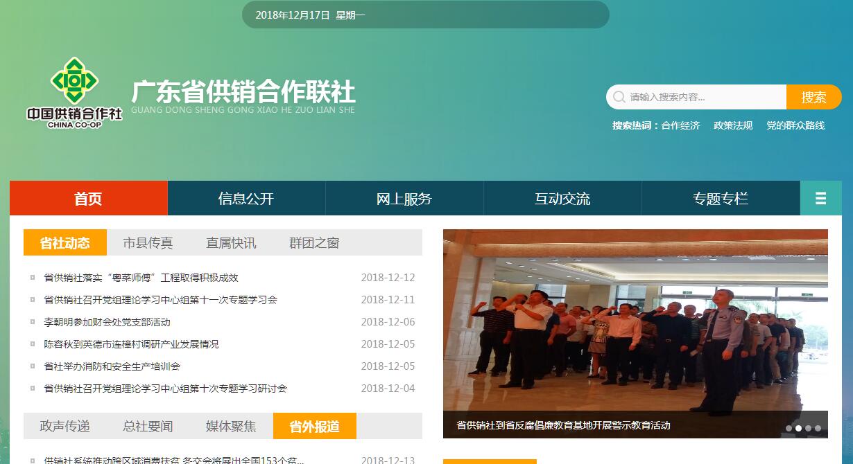 广东省供销合作联社是全省供销合作社的联合组织,由省政府领导,参照国家公务员法管理。广东省供销合作联社设立理事会、监事会,实行理事会主任负责制,内设处室8个,直属学校3所,直属全资及控股企业9家。广东省供销合作联社的前身是广东省合作总社,成立于1951年2月,1954年10月改名为广东省供销合作社,1958年3月与广东省服务厅合并为广东省第二商业厅(保留供销合作社名义),同年6月广东省第一、第二商业厅合并,成立广东省商业厅(对外仍保留供销合作社名义)。1961年9月广东省供销合作社与广东省商业厅分署办公。“文革”初期,广东省供销合作社再次合并到广东省商业厅,1975年5月又与广东省商业厅分署办公,1983年7月,第三次合并到省商业厅,1985年4月,第三次从省商业厅划出,单独建制,但不再作为国家行政机构,对所属各级供销联合社负有组织、协调、监督和提供服务的责任。经过多年来的改革发展,全省供销合作社正在从传统经营方式向现代流通业态转变,从单纯购销业务向综合经营服务转变,从单一供销合作向多领域全面合作转变,成为经营性服务功能充分发挥、公益性服务作用不断体现的新型合作经济组织。全省供销合作社系统现有地级以上市供销合作社20个、县(市、区)级供销合作社101个,乡镇基层供销合作社1107个。2017年底,全省系统资产总额为440亿元,所有者权益112.4亿元;正常经营企业1023家,发展农民合作社3453家,各类行业协会155个,经营网点3.4万个,从业人员9.5万人。2017年,全省系统实现销售总额777.5亿元,实现利润总额7.9亿元。其中省供销社本级企业销售总额和利润总额分别为216.3亿元和2.7亿元,创历史同期最好水平。当前,全省供销合作社系统正深入学习习近平新时代中国特色社会主义思想和党的十九大精神,认真贯彻落实党中央、国务院,省委、省政府和全国供销合作总社的工作部署,坚持为农服务根本宗旨,坚持合作经济基本属性,坚持社会主义市场经济改革方向,按照“立足三农,服务城乡;担当责任,防范风险;正本清源,企业为重;联合发展,共享利益”的工作思路,以全面深化综合改革为引领,以密切与农民利益联结为核心,以提升为农服务能力为根本,以强化基层社和创新联合社治理机制为重点,按照政事分开、社企分开的方向,因地制宜推进体制改革和机制创新,加快建成适应社会主义市场经济需要、适应城乡发展一体化需要、适应中国特色农业现代化需要的组织体系和服务机制,努力成为服务农民生产生活的生力军和综合平台,奋力开创广东供销合作事业新局面。其主要职能是:研究制定供销合作社的发展战略和发展规划,指导供销合作社的改革和发展;对政府授权和有关部门委托经营的商品进行组织、协调管理;协调有关部门的关系,指导供销合作社的业务活动,引导农民发展商品生产,发展农业产业化;组织开展对外经济、贸易、技术交流;宣传党中央、国务院、省委和省政府有关农村经济工作的方针政策,指导供销合作社加强精神文明建设;代表全省供销合作社参与全国总社的各项活动,承办省委、省政府和全国总社交办的其他事项。