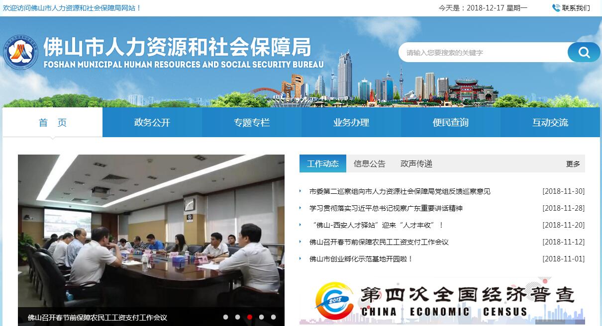 佛山市人力资源和社会保障局主要职责:(一)贯彻执行国家和省、市有关人力资源和社会保障事业发展的方针政策和法律法规,拟订本市人力资源和社会保障事业发展规划、政策,并组织实施和监督检查。(二)拟订并组织实施本市人力资源市场发展规划和人力资源流动政策,建立统一规范的人力资源市场,促进人力资源合理流动、有效配置。(三)负责促进就业工作,拟订统筹城乡的就业发展规划和政策,完善公共就业服务体系,健全就业援助制度,完善职业资格制度,统筹建立面向城乡劳动者的职业培训制度,负责技工学校管理,牵头拟订高校毕业生就业政策,会同有关部门拟订高技能人才、农村实用人才培养和激励政策。(四)统筹建立覆盖城乡的社会保障体系。统筹拟订城乡社会保险及其补充保险政策和标准,组织拟订统一的社会保险关系转续办法和基础养老金统筹办法,统筹拟订机关企事业单位基本养老保险政策。(五)负责对社会保险基金管理实施行政监督;负责就业、失业、社会保险基金预测预警和信息引导,拟订应对预案,实施预防、调节和控制,保持就业形势稳定和社会保险基金总体收支平衡。负责组织推行全市企业年金制度,会同有关部门拟订社会保险及其补充保险基金管理和监督制度,会同有关部门编制本市社会保险基金预决算草案,参与拟订本市社会保障基金投资政策。(六)会同有关部门拟订机关、事业单位人员工资收入分配政策,拟订机关企事业单位人员福利和离退休政策;建立机关企事业单位人员工资正常增长和支付保障机制。(七)负责军队转业干部的安置工作。负责军队转业干部安置计划的编制下达工作,负责军队转业干部的安置和教育培训工作,组织拟订部分企业军队转业干部解困和稳定政策,负责自主择业军队转业干部管理服务工作。(八)组织实施公务员法工作,负责行政机关公务员和参照公务员法管理单位工作人员综合管理;协助垂直管理部门公务员的管理工作;拟定全市机关事业单位的表彰奖励制度,审核以市人民政府名义奖励表彰的人员。(九)会同有关部门指导事业单位人事制度改革,拟订事业单位人员和机关工勤人员管理政策,指导人才管理和开发工作,制定专业技术人员管理和继续教育政策,负责企事业单位管理人员继续教育管理工作,牵头推进深化职称制度改革工作,承担博士后管理工作,负责高层次专业技术人才选拔和培养工作。(十)负责国(境)外人才、留学人才及智力项目引进和管理工作;管理来我市工作的外国专家和港、澳、台专家;实施公民境外就业和境外人员就业的政策,归口管理境外企业驻我市机构雇请劳务人员的工作;管理各类出国(境)培训项目(人员)和派遣出国研修生工作。(十一)会同有关部门拟订农民工工作综合性政策和规划,推动农民工相关政策的落实,协调解决重点难点问题,维护农民工合法权益。(十二)统筹拟订劳动、人事争议调解仲裁制度和劳动关系政策,完善劳动关系协调机制,制定禁止非法使用童工政策和女工、未成年工的特殊劳动保护政策,组织实施劳动监察,协调劳动者维权工作,依法查处重大案件。(十三)负责管理市社会保险基金管理局。(十四)承办市人民政府及省人力资源和社会保障厅交办的其他事项。