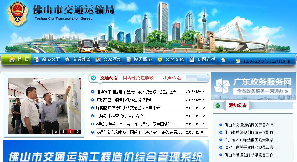 根据《中共佛山市委、佛山市人民政府关于印发<佛山市人民政府机构改革方案>的通知》(佛发〔2009〕13号),设立佛山市交通运输局(挂市公路局牌子),为市人民政府工作部门。其主要职责:(一)贯彻执行国家、省、市有关交通运输工作的方针政策和法律法规,结合我市实际组织拟订全市交通运输行业的发展战略、专项规划、行政管理措施和实施办法并监督实施;参与拟订物流业发展战略和规划;指导公路、水路行业有关体制改革工作。(二)负责涉及综合运输体系的规划协调工作;会同有关部门组织编制综合运输体系规划,指导、协调交通运输枢纽规划和管理;负责组织、指导交通行业信息化建设;组织我市交通运输行业科技项目的申报及成果推广,负责我市交通运输综合统计和分析;指导监督行业技术标准和规范的实施;推动交通运输行业的环保和节能减排工作。(三)负责交通运输基本建设项目的审批(核),并组织实施;承担全市交通建设市场监管、调控责任,维护交通建设市场的秩序;对全市交通建设项目的法定程序实施规范化监管;负责交通建设项目工程质量和造价的监管。(四)全市交通基础设施的管理和维护,对公路桥梁收费站和公路路政实施行业管理;负责机动车辆路桥通行费年票制的组织协调和监督管理工作;协调全市航道设施的管理和维护。(五)负责全市道路跨区客运、危险货物运输业的审批;负责组织、监督、协调、实施道路旅客运输、道路货物运输、公交客运、出租客运、机动车维修、机动车驾驶培训、道路客货运站场、货运代理、运输车辆租赁、保管等行业管理,维护行业的竞争秩序;综合平衡全市交通运力的投放,检查指导行业经营行为和服务质量。(六)负责全市道路、水路运政和港口行政管理;负责协调港口行政管理规费征稽工作;协助有关部门依法做好运价调整和改革工作。(七)负责全市水路客货运输业(包括港澳航线)、港口、引航等港口辅助业务及港口岸线布局、运输服务业的审批和管理监督工作;港口行业从业人员从业资格的行政许可;港澳航线的海员及服务员的有关证件审核和报批工作;境外航商代表机构等辅助性业务的行业管理。(八)指导全市交通运输行业的安全生产工作和应急管理,实施安全考核认证工作。组织关系国计民生的抢险救灾、紧急物资运输工作;负责协调全市交通战备工作。(九)负责协调佛山机场民航业务和佛山各火车站的相关运输业务。(十)负责指导、协调、监督和实施交通领域的综合行政执法。
