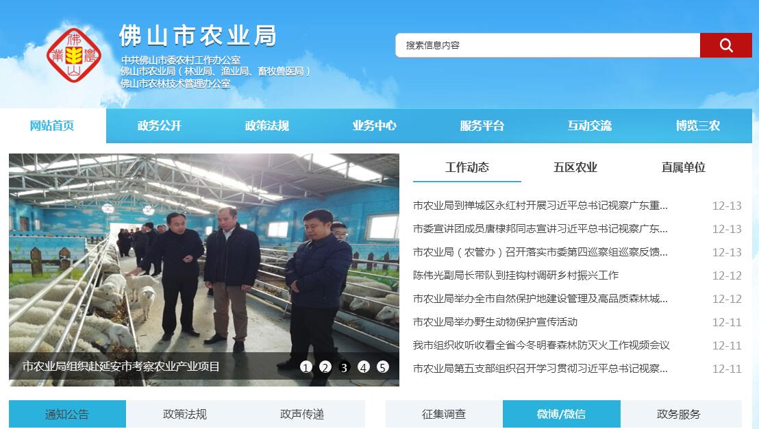 根据《中共佛山市委、佛山市人民政府关于印发<佛山市人民政府机构改革方案>的通知(佛发〔2009〕13号,设立佛山市农业局、加挂中共佛山市委农村工作办公室、市林业局、市渔业局、市畜牧兽医局牌子,为市人民政府工作部门。其主要职责:1、贯彻执行国家和省、市有关农业(包括渔业、林业、畜牧业,下同)和农村经济发展的法律、法规和方针政策,拟订农业和农村中长期发展规划和农业综合开发规划并组织实施。 2、负责农村工作重大问题的调查研究、检查监督、综合协调,提出农村社会发展战略、规划和政策建议,提出处理农村改革和发展重大问题的原则和措施,指导推进统筹城乡发展综合改革工作,综合协调市直涉农部门的有关工作。 3、拟订农业产业政策,指导推进政策性农业保险,引导农业产业结构的合理调整、农业资源的合理配置和产品品质的改善。 4、指导农业社会化服务体系、农村集体经济组织和专业合作经济组织建设,指导农村集体土地承包和集体资产管理,指导、监督减轻农民负担和土地使用权流转工作。 5、负责农业资源规划、生态农业和农业可持续发展工作,参与有关部门实施基本农田保护区的建设及保护和管理,指导农用地、农村可再生资源的开发利用以及农业生物物种资源的保护和管理。 6、拟订农业产业化经营有关政策、措施,培育和引导发展农业龙头企业,参与拟订农产品专业批发市场体系建设与发展规划,发布农业生产、农产品及农业生产资料供求情况等农业经济信息。 7、负责指导农业机械化事业,组织农机推广应用和安全监理,指导农业机械化服务体系建设。 8、拟订农业科研、教育、技术推广及其队伍建设的发展规划和有关政策、措施,组织农业技术推广项目的遴选及实施,指导现代农业基地建设;指导农业教育和职业技能开发工作,组织农业技术推广奖的评奖及推荐。参与组织农业的会展和对外经济、技术交流与合作。 9、参与拟订农业有关产业技术标准并组织实施,参与组织农业有关产业产品及绿色食品的质量监督、认证和植物新品种的保护工作,负责初级农产品生产环节质量安全监管。 10、负责畜禽、水产、农作物、林木等种子、种苗的管理和兽医医政、兽药药政、林政、渔政海监及野生动植物保护工作,参与组织、协调种子、种苗(苗木)、农药、肥料、兽药、饲料、饲料添加剂等农业投入品的质量监测、鉴定及进口登记和执法监督工作。 11、组织实施动、植物防疫和检疫工作,组织对动、植物疫情的监测、控制和疫病的扑灭工作。 12、参与、组织农业防灾救灾、应急管理和森林防火工作。 13、拟订造林绿化规划,组织、指导造林绿化、义务植树等工作。14、负责扶贫开发和指导革命老区建设工作。15、负责生猪定点屠宰监管工作,落实畜禽屠宰环节质量安全监管职责,严厉打击私屠滥宰等违法违规行为。16、承办市委、市政府和省主管部门交办的其他事项。