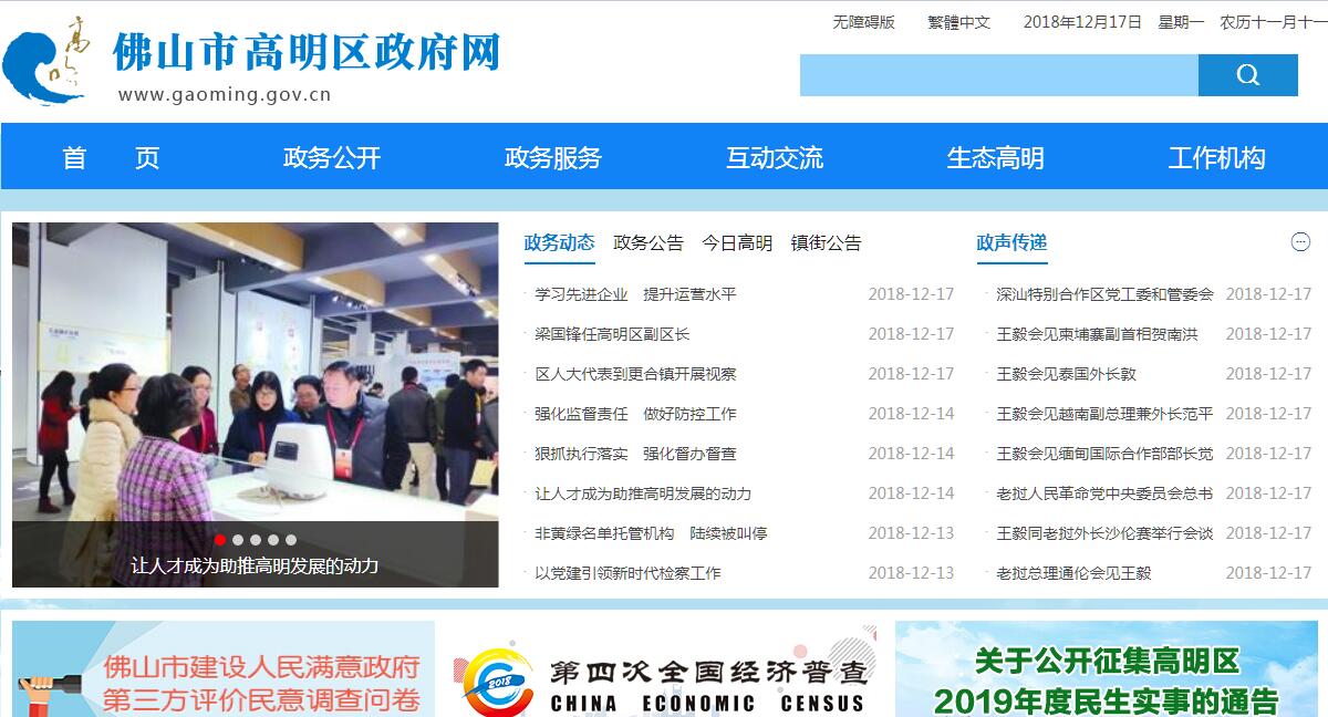 | 网站简介: 高明区是广东省佛山市五个行政辖区之一。地处广东省中部,珠江三角洲西翼,户籍人口29万(六普),区域形状狭长,东西最长处达55公里,南北相距42公里,地势自西南向东北倾斜,东北最宽处42公里,大部分地区属冲积平原区,东北隔西江与南海区、三水区相望,南与鹤山市相邻,西南与云浮市新兴县相连,西北与高要市接壤,地肥沃,物产丰盈,西部更合镇保留了原始森林,东部荷城街道濒临西江,有着发达的湖泊和河涌水系,是“广佛同城”、“广佛肇经济圈”重要组成部分。高明有“文风甲端郡”、“彦硕辈出”、鱼米之乡、山林水都的美誉。高明有旅居港澳同胞和海外侨胞10多万人,分布于世界20多个国家和地区,是广东知名侨乡。2018年10月,高明区入选2018年度全国投资潜力百强区、全国科技创新百强区、全国绿色发展百强区。2018年11月,入选2018年工业百强区。 |