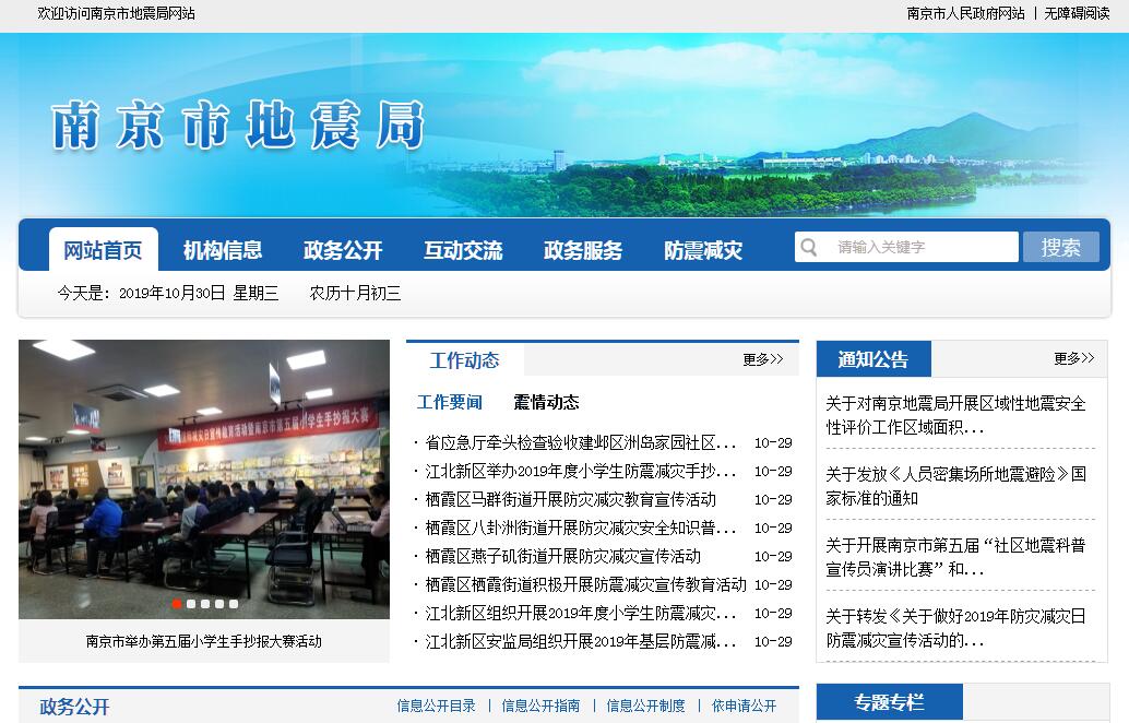 南京市地震局,是市政府主管全市防震减灾的工作机构。其主要职责规定如下:一、根据有关法律、法规、规章的规定,监督、检查全市防震减灾工作;拟定全市防震减灾方针、政策,组织起草地方性法规、规章,制定规范性文件,并组织实施。二、组织编制全市中长期防震减灾规划和年度计划;推进防震减灾计划体制和相应经费渠道的建立与完善;管理、监督地震事业费、基本建设费和专项资金的使用。三、负责建立地震监测预报工作体系。统一规划全市地震台网(站)及信息系统的建设,实现资源共享; 制定地震监测预报方案并组织实施;强化地震震情跟踪,提出地震预报意见;对区、县、企业地震监测台网(站)和群测群防工作实行行业管理;会同有关部门依法保护地震监测设施和地震观测环境。四、会同有关部门建立震灾预防工作体系。负责本行政区域内建设工程地震安全性评价管理和抗震设防要求的确定;管理全市地震灾害预测;制定破坏性地震应急预案并检查落实情况;组织开展防震减灾知识宣传教育工作,并按照有关规定审核防震减灾宣传报道。五、承担市政府抗震救灾指挥机构办事机构职能;负责震情和灾情速报,会同有关部门组织地震灾害调查与损失评估;参与制定地震灾区重建规划。六、会同有关部门建立市地震紧急救援工作体系。开展地震应急、救援技术和装备研究与开发;会同有关部门组建和培训地震紧急救援队伍;协助有关部门建立地震应急救援物资储备系统。七、推进地震科学技术现代化,组织开展地震科学技术研究及其成果推广应用;开展地震科学技术合作与交流。八、依法承担有关地震行政复议和行政诉讼工作;负责地震行业质量与技术监督管理工作;负责地震技术标准的宣传、贯彻、实施和执行监督;管理地震计量工作。九、指导区、县防震减灾工作。十、承办市政府、省地震局和市应急管理局交办的其他事项。