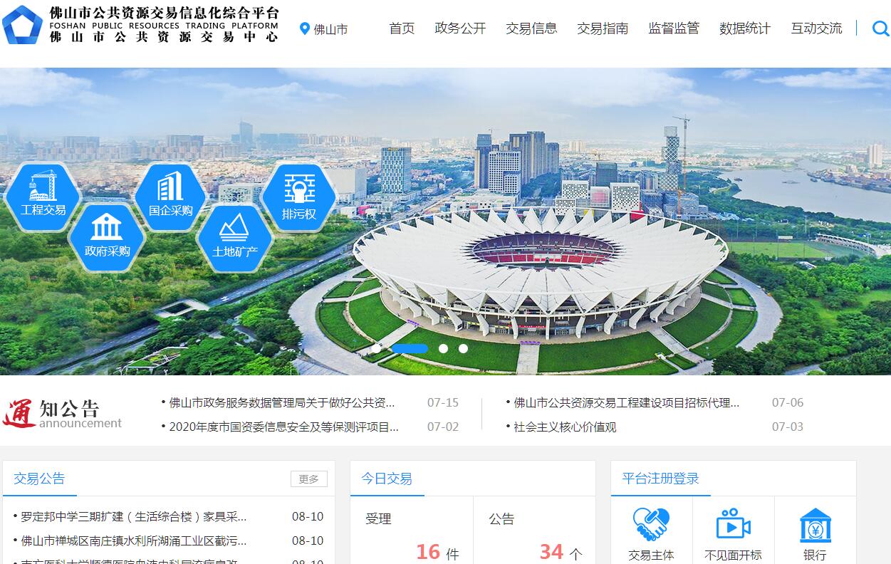 根据省、市关于事业单位分类改革的工作情况和有形要素市场管办分离的要求,佛山市委、市政府决定率先在省内实行公共资源交易体制改革,将原佛山市建设工程交易中心、市政府采购中心、市土地交易中心、市药品集中招标采购服务中心统一进行整合,组建公共资源交易中心。2011年3月28日,交易中心正式挂牌对外运营。根据佛机编〔2010〕116号文,佛山市公共资源交易中心为公益一类事业单位,归口佛山市人民政府行政服务中心管理。中心核定人员编制57名(其中事业编制34名,技术雇员3名,合同工20名),领导职数一正三副;内设综合信息部、财务部、采购一部、采购二部、交易一部和交易二部共六个部门。 佛山市公共资源交易中心的主要任务是根据国家、省、市有关法律、法规和政策,开展建设工程招投标、政府采购、土地使用权出让、矿产交易、政府资产交易、药品和医疗器械设备的集中招标采购、国有企业采购及排污权交易业务活动并提供相关服务。目前,佛山市公共资源交易中心办公地点设在禅城区季华五路28号公交大厦四楼、六楼,中心拥有办公、服务场地约3000平方米,设有四个开标室、八个评标室及会议室、评标监控室、档案室等多个功能室。 佛山市公共资源交易中心组建以来,坚持公开、公平、公正和诚实信用的原则,不断加强内部管理,强化依法规范操作程序,积极推进廉政建设,以信息化建设为抓手,加快全市公共资源交易平台的一体化建设,努力提高中心服务水平,致力打造一个展示政府“公开、透明、高效、廉洁” 形象的窗口,构建一个让交易主体满意、政府放心的公共资源交易服务平台。