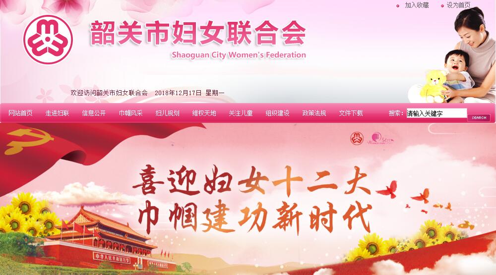 | 网站简介: 韶关市妇联是市委领导下的负责妇女儿童工作的群众团体,是党和政府联系妇女群众的桥梁和纽带。其主要职能是:(一)围绕党的中心工作,贯彻执行市委、市政府和上级妇联部署的各项工作任务。制定本市妇女儿童事业发展规划,积极推进妇女儿童事业纳入社会发展总体规划。(二)组织妇女学政治理论、学文化知识、学科学技术,全面提高妇女的素质。教育引导妇女增强自尊、自信、自立、自强精神,促进妇女人才成长。(三)动员和组织妇女投身改革开放、参与经济建设、促进社会发展。在农村和城镇妇女中组织开展富有妇女特色的劳动竞赛活动,鼓励广大妇女为我市的三个文明建设贡献聪明才智。(四)维护妇女儿童的合法权益。代表妇女参与社会的民主管理和民主监督,参与有关妇女儿童法律、法规、规章的制定。致力促进男女平等。(五)指导各级妇联和市的其他妇女组织开展业务工作。配合组织部门做好优秀妇女人才的培养、选拔和推荐工作。(六)为妇女儿童服务。加强与社会各界的联系,协调和推动社会各界为妇女儿童办实事,办好事。(七)扩大对外交流与合作,加强与港、澳、台地区及华侨妇女组织、各民主党派、宗教团体妇女组织的联谊。 |