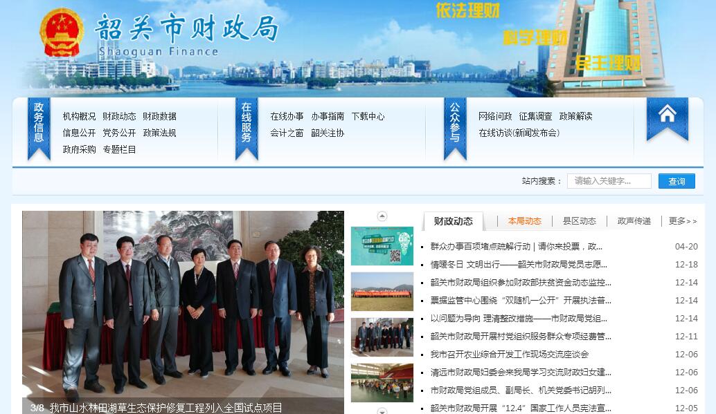 韶关市财政局主要职责为:(一)贯彻执行国家和省有关财政、税收工作的方针政策和法律法规,组织起草财政、税收政府采购、国有资产管理、资产评估、财务会计、政务债务管理等方面的规范性文件,制定行政事业单位资金管理、会计核算、资产管理、政府采购等财政管理制度并监督执行。(二)拟订财政发展战略、中长期财政规划,参与分析预测宏观经济形势,参与制定各项宏观经济政策,提出运用财税政策实施宏观调控、综合平衡社会财力和推进基本公共服务均等化的建议,执行中央与地方、国家与企业的分配政策。(三)承担市级各项财政收支管理的责任。负责编制年度市级预决算草案并组织执行,受市人民政府委托,向市人民代表大会报告市级和全市预算及其执行情况,向市人民代表大会常务委员会报告决算;制定行政事业单位开支标准、定额,审核批复市级部门(单位)的年度预决算,拟订市对区财政管理体制并组织实施。(四)制定全市财政和预算收入计划,管理和监督各项财政收入。(五)负责市级非税收入及各项政府性基金管理,监管彩票市场,管理彩票资金,管理政府债务和政府主权外债业务,防范财政风险,管理财政票据,管理财政预算内行政机构、事业单位和社会团体的非贸易外汇,参与监管住房保障和住房公积金。(六)负责本级财政资金调度和财政总预算会计工作,监管全市政府财政采购工作,监管本级行政事业单位会计核算工作。(七)负责本级行政事业单位国有资产监管,负责本级国有资本经营预算编制、执行和监督,组织开展行政事业单位会计决算报表及公共资源统计分析评价工作。(八)负责本级各项财政专项资金的安排和监督管理,管理本级财政社会保障支出,监管社会保障资金。(九)参与财政性资金项目安排总量研究,组织调度财政性基本建设资金,参与审核财政性资金投资项目工程概算,承担财政性资金投资项目工程预算、结算和竣工财务决算审核工作,对财政性资金建设项目实施财务监管,参与工程造价管理。(十)监督检查财税等方面法律法规和政策的执行情况,查处和反映财政收支管理中的重大问题,提出加强财政管理的政策建议,承担财政支出绩效管理工作。(十一)管理全市会计工作,依法指导和监督注册会计师和会计师事务所的业务,指导和管理社会审计工作。(十二)对市直行政事业单位国有资产实行统一管理,负责管理政府授权经营的控股、参股企业的国有资产产权及其收益,负责城市公共资产和资源管理、配置和处置工作。(十三)负责党政群机关和企事业单位小汽车定编有关工作。(十四)负责农业综合开发、农村财务监管有关工作;指导、协调农村集体资产经营管理和农村集体“三资”监管工作。(十五)承办市人民政府和省财政厅交办的其他事项。