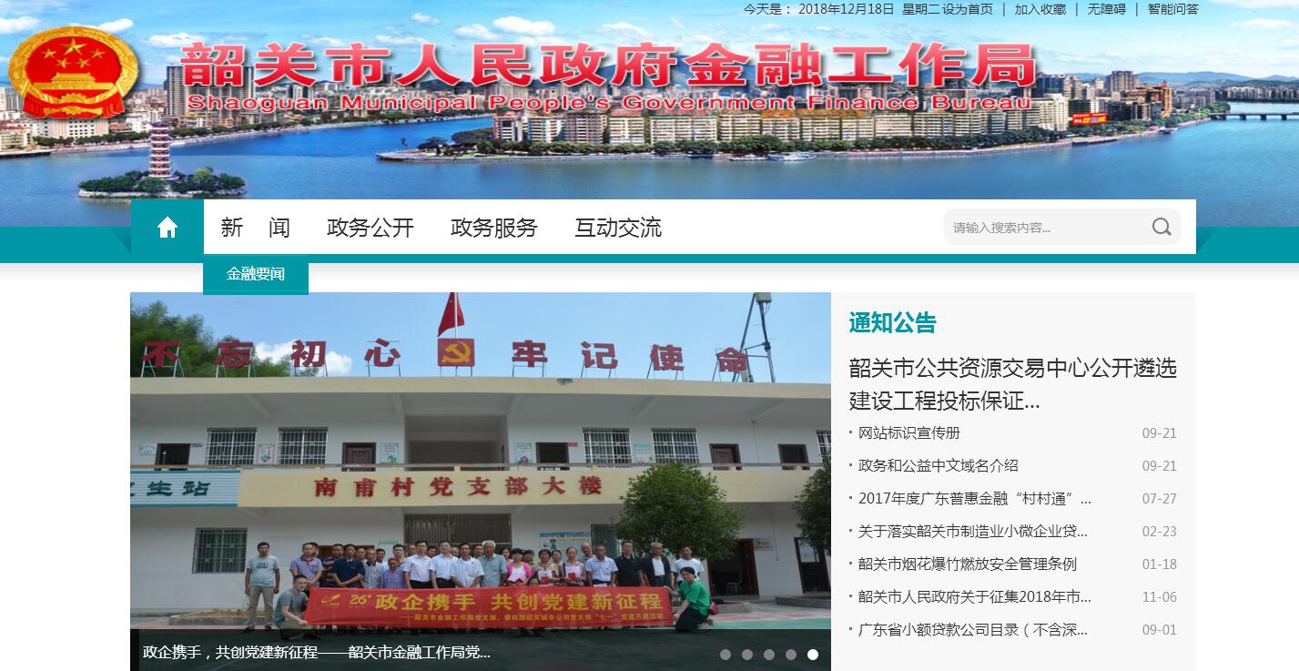 | 网站名称: | 韶关市人民政府金融工作局 | ||