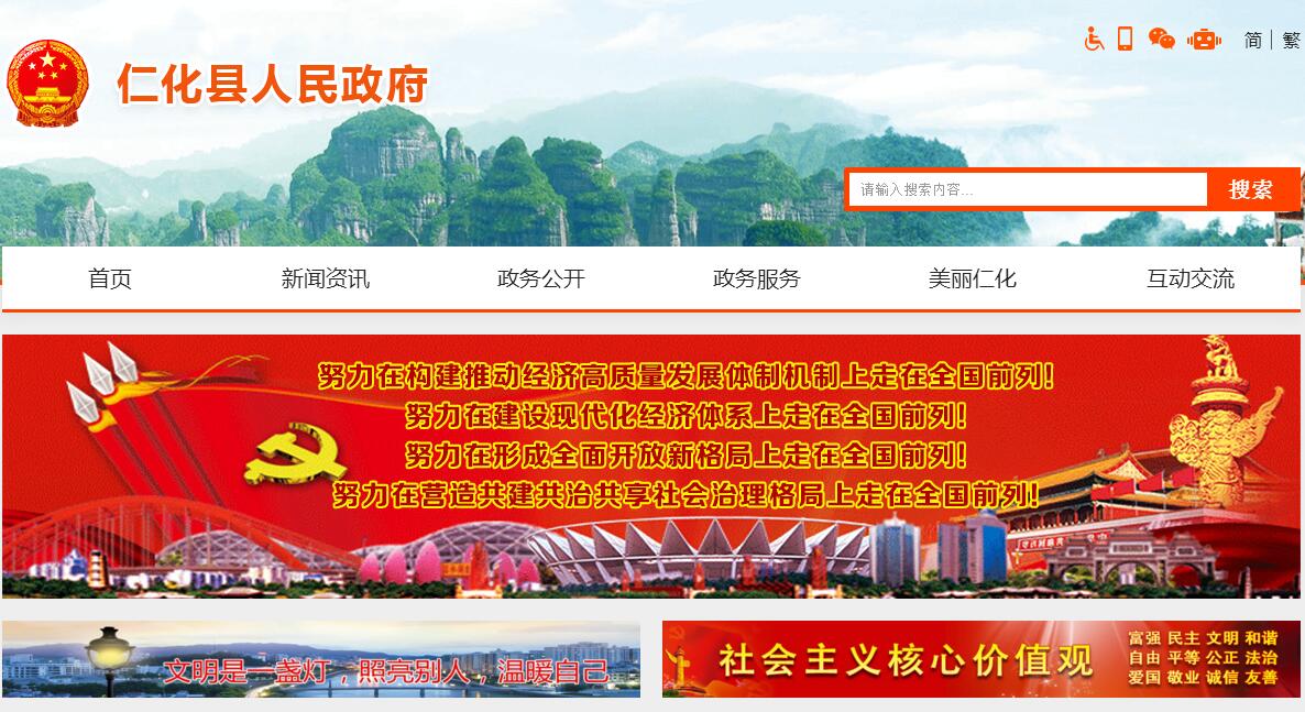 仁化县地处南岭山脉南麓,位于广东省北部,是粤、湘、赣三省交接地,东接江西省崇义、大余县,北邻湖南省汝城县,南面紧邻韶关市区。县境东西长47.3千米,南北宽44千米,总面积2223平方公里,其中山地70%,丘陵20%,小平原10%。辖10个镇和1个街道办事处,125个村(居),总人口24.47万人。属亚热带季风气候,四季宜人,年平均气温19.9℃,年平均降雨量1660.9毫米,无霜期308天。仁化底蕴深厚、民风淳朴,极富人文之美。秦末汉初,南越王赵佗就在仁化北端隘口筑有“古秦城”。南朝齐年间(479-502),始建仁化县,距今1500多年。仁化是一块红色的土地,“仁化暴动”打响粤北湘南暴动第一枪,受到中共六大和共产国际的关注,为中国革命提供了宝贵经验;毛泽东、朱德、彭德怀、陈毅、邓小平等老一辈无产阶级革命家曾在此留下过光辉的足迹,是红军长征征途的重要一站。仁化人杰地灵,历代杰出人物层出不穷,古代有唐朝著名政治家、文学家、诗人、名相张九龄,当代有原云南省革委会主任、昆明军区第一政委、开国中将谭甫仁等。文化风情独特,民间舞龙舞狮、唱山歌、唱“月姐歌”等群众文化活跃,其中“月姐歌”被列为省级非物质文化遗产。仁化山清水秀、风光旖旎,极富自然之美。境内有世界自然遗产地、世界地质公园、国家5A级景区、国家级重点风景名胜区、国家级地质地貌自然保护区——丹霞山,国家级水利风景区——丹霞源水利风景区,全国历史文化名村、国家3A级旅游景区——石塘古村,国家级重点文物保护单位——双峰寨,省内唯一的唐代古塔、国家级重点文物保护单位——云龙寺塔等;有唐、宋、明、清历代不同风格的14座宝塔,有中国“古塔之乡”的美誉。仁化物产丰饶、交通便利,极具后发之美。仁化生态环境优美,森林覆盖率达78.92%,是广东省重点林业生态县,素有广东省“毛竹之乡”、“白毛茶之乡”的美称。水力资源充沛,是全国首批农村初级电气化达标县。自然资源丰富,铅、锌等矿产资源蕴藏量大。交通区位优势明显,随着武深高速(仁化段)建成通车,我县形成一铁(赣韶铁路)、两高(韶赣高速、武深高速)、三国(G323、G106、G535)、四省(S246、S342、S244、S517)四通八达、纵横交错的交通网络,锦江河与浈江河交汇后流入北江汇入珠江,是连接珠三角和内地的“桥头堡”。近年来,仁化县先后获得国家卫生县城、全国县级文明城市提名城市、全国最美生态旅游示范县、全国绿化模范县、中国最具投资潜力特色示范县200强、中国最佳生态休闲旅游名县、中国摄影创作基地、广东省文明县城、广东省旅游强县、广东省县域旅游经济竞争力十强县等荣誉称号。2017年,全县完成地区生产总值112.45亿元,增长3.8%;完成固定资产投资67.46亿元,增长5.8%;完成公共财政预算收入5.38亿元。当前,仁化县正以习近平新时代中国特色社会主义思想为指引,全面深入学习贯彻落实党的十九大和习近平总书记在参加十三届全国人大一次会议广东代表团审议时的重要讲话精神,深入贯彻落实省委、市委历次全会精神,按照市委关于发展旅游文化产业的部署,紧紧围绕“空间拓展、韶文化挖掘、产品提升”三大重点工作,以加快环丹旅游产业项目建设为抓手,以发展全域旅游为重点,大力推进大丹霞旅游圈建设,并对标全面建成小康社会,大力实施“一三九”发展战略(紧紧围绕建设“生态、活力、幸福”新仁化这一目标,主攻“生态经济、幸福民生、美丽乡村”三大重点领域,大力开展“全域旅游、产业共建、城镇提升、教育现代化、卫生创强、精准扶贫、农村人居环境综合整治、农村综合改革、国家现代农业示范区建设”九大任务三年攻坚行动),唱响红色主旋律、打造绚美大丹霞、推动乡村大振兴,全面从严治党,为决胜全面小康、加快振兴发展而努力奋斗。