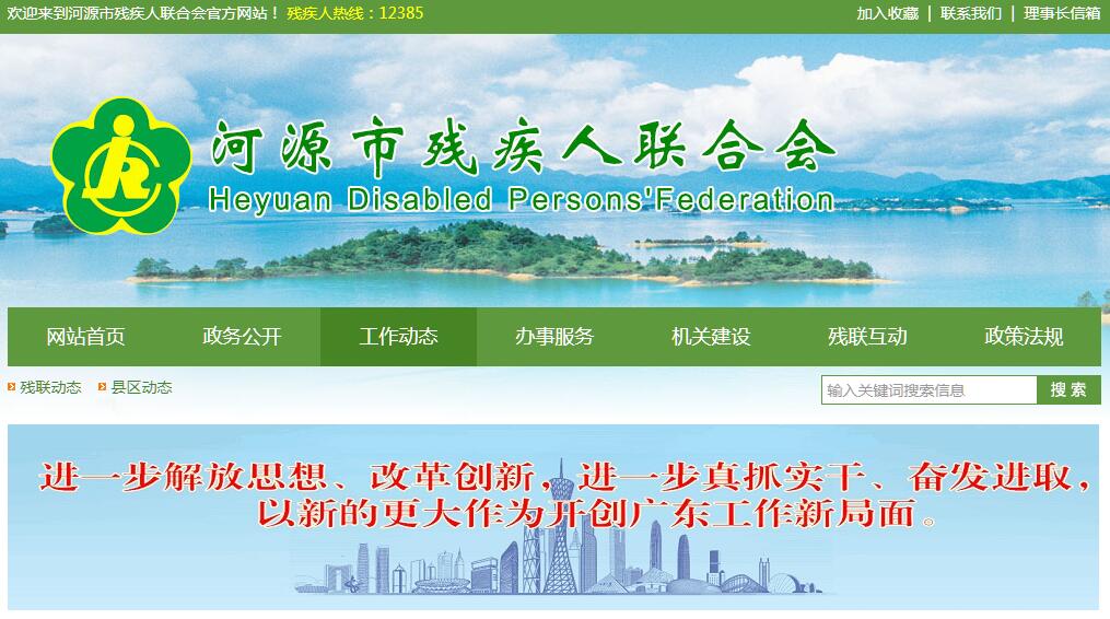 河源市残疾人联合会于1991年5月18日成立,它代表全市各类残疾人的共同利益,维护残疾人的合法权益,为残疾人服务,并承担政府委托的任务,开展残疾人工作,动员社会力量,发展残疾人事业。它是代表功能、服务功能、管理功能融为一体的综合性组织。河源市残疾人联合会机关的主要任务是:(一)贯彻执行党和国家有关残疾人工作的方针、政策和法规,制定市残疾人事业的规划和计划,并组织实施。(二)密切联系残疾人,听取和反映残疾人意见;维护残疾人合法权益,为残疾人服务;团结教育残疾人遵守法律,发扬乐观进取精神,自尊、自信、自强、自立,为社会主义建设贡献力量。(三)弘扬人道主义精神,宣传残疾人事业,沟通政府、社会与残疾人之间的联系,动员社会理解、尊重、关心、帮助残疾人。(四)开展和促进残疾人康复、教育、劳动就业、文化、体育、科研、用品用具、福利、社会服务、无障碍设施和残疾预防;依照法律收取残疾人劳动就业保障金,扩大残疾人事业,创造良好环境和条件,扶助残疾人平等参与社会生活。(五)向社会各界宣传残疾人事业,反映残疾人意见和要求,代表残疾人参加社会协调与对话。协助政府研究制定和实施残疾人发规、政策、规划和计划,对有关业务领域进行指导和管理。(六)承担政府残疾人工作协调委员会日常工作,做好综合、组织、协调和服务工作。(七)指导各级基层残联工作,配合组织部门做好优秀残疾人才的选拔培养和推荐工作,管理各类残疾人社团组织。(八)密切与其他兄弟市残联的联系和合作,加强与港、澳、台地区和国际社会残疾人福利机构之间的交流与合作。(九)承办市委、市人民政府和上级业务部门交办的其他事项。
