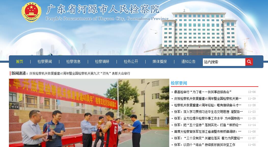 地处粤东北山区的河源市人民检察院,自1988年建院以来,在江奕元、黄其粤、尚德、刘祥福、李粤贵、蔡永珊六任检察长的带领下,承前启后,开拓进取,锐意创新,开创了山区检察工作新局面,取得了丰硕的成果。河源市人民检察院已由建院初期只有7个内设机构发展壮大为现有19个内设机构、1个直属机构和1个派出机构的国家法律监督机关。人民检察院是国家的法律监督机关,通过打击刑事犯罪、查办和预防职务犯罪、加强诉讼监督,保障国家法律的统一正确实施。多年来,河源市检察机关紧紧围绕党和国家工作大局,开拓进取,扎实工作,忠实履行宪法和法律赋予的监督职能,为维护河源稳定和经济社会科学发展做出了积极贡献。检察工作需要人民群众的理解和支持,人民群众也要求全面了解检察机关的性质、任务和工作情况,《河源检察网》的建成和开通,正是我们实行科技强检、推行“阳光检务”、接受社会监督的一个重要举措。我们将以此为载体,努力把网站打造成为展示工作的窗口、联系群众的纽带、接受监督的平台,认真倾听民声、了解民意、汇集民智,不断加强和改进检察工作,充分发挥维护稳定、服务发展、促进和谐的职能作用,与社会各界、全体市民一起致力河源发展、关注法制建设、推动法治进步,一起为河源的“乘势而上,率先崛起”努力奋斗!