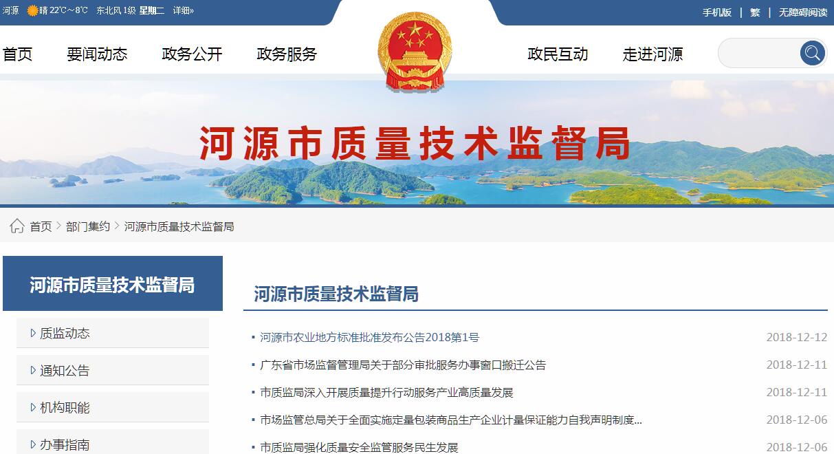 河源市质量技术监督局主要职责: (一)宣传、贯彻落实国家和省有关质量技术监督工作的方针政策和法律法规,根据有关法律法规开展行政执法工作。(二)承担产品质量诚信体系建设工作。实施国家质量发展纲要,组织、协调、实施质量强市有关工作,推进名牌 发展战略;会同有关部门组织实施重大工程设备质量监理制 度,参与对重大产品质量事故调查;监督管理产品防伪工作。(三)负责产品质量安全监督工作。负责产品质量安全 强制检验、风险防范和伤害监测、监督抽查工作;协助并做 好工业产品生产许可证管理和监督检验工作;监督管理产品 质量安全仲裁检验、鉴定工作,组织开展产品质量安全专项 整治工作,依法查处产品质量违法行为,按分工打击制售假冒伪劣商品违法行为,组织协调全市有关专项打假工作。(四)承担标准化工作。推进技术标准战略,监督标准的贯彻执行,推行采用国际标准和国外先进标准,指导企事业单位的标准化工作,监督管理本行政区域组织机构代码、 商品条码和数据识别编码的应用工作。(五)负责监督管理计量工作。推行法定计量单位和组织执行国家计量制度,依法管理计量器具,组织量值传递和 比对工作,推行工业计量现代化,规范和监督商品量和市场 计量行为。(六)承担食品包装材料、容器、食品生产经营工具等食品相关产品生产加工环节的质量安全监督管理责任。(七)负责监督管理认证工作。按权限依法对产品质量检验检测机构进行监督管理,依法监督管理认证中介机构,依法监督管理体系认证和产品认证工作。(八)负责综合管理特种设备安全监察、监督、风险防范和伤害监测工作,组织高耗能特种设备节能监管工作,对 特种设备进口实施监督检查,依法承担特种设备安全事故调 查工作。(九)负责制订并组织实施质量技术监督科技发展和技术机构建设规划,组织重大科研和重大技术引进工作。(十)依法管理和指导全市质量技术监督业务工作,开展全市质监系统干部业务培训和素质教育相关工作,指导全市质监系统规范化建设和行政效能、政风行风建设,统筹全 市质监系统信息化建设有关工作。(十一)承办市人民政府、上级业务主管部门交办的其他事项。