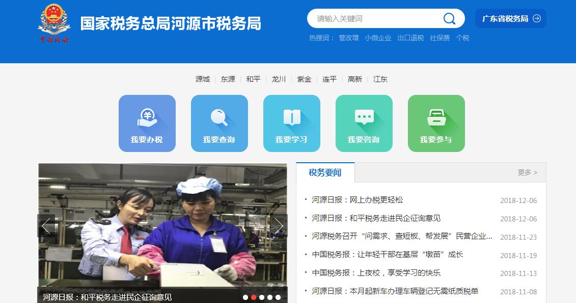 国家税务总局河源市税务局的主要职责是:(一)负责贯彻执行党的路线、方针、政策,加强党的全面领导,履行全面从严治党责任,负责党的建设和思想政治建设工作。(二)负责贯彻执行税收、社会保险费和有关非税收入法律、法规、规章和规范性文件,研究制定具体实施办法。组织落实国家规定的税收优惠政策。(三)负责研究拟定本系统税收、社会保险费和有关非税收入中长期规划,参与拟定税收、社会保险费和有关非税收入预算目标并依法组织实施。负责本系统税收、社会保险费和有关非税收入的会统核算工作。组织开展收入分析预测。(四)负责开展税收经济分析和税收政策效应分析,为上级税务机关和河源市委、市政府提供决策参考。(五)负责所辖区域内各项税收、社会保险费和有关非税收入征收管理。组织实施税(费)源监控和风险管理,加强大企业和自然人税收管理。(六)负责组织实施本系统税收、社会保险费和有关非税收入服务体系建设。组织开展纳税服务、税收宣传工作,保护纳税人、缴费人合法权益。承担涉及税收、社会保险费和有关非税收入的行政处罚听证、行政复议和行政诉讼事项。(七)负责所辖区域内国际税收和进出口税收管理工作,组织反避税调查和出口退税事项办理。(八)负责组织实施所辖区域内税务稽查和社会保险费、有关非税收入检查工作。(九)负责增值税专用发票、普通发票和其他各类发票管理。负责税收、社会保险费和有关非税收入票证管理。(十)负责组织实施本系统各项税收、社会保险费和有关非税收入征管信息化建设和数据治理工作。(十一)负责本系统内部控制机制建设工作,开展对本系统贯彻执行党中央、国务院重大决策及上级工作部署情况的督查督办,组织实施税收执法督察。(十二)负责本系统基层建设和干部队伍建设工作,加强领导班子和后备干部队伍建设,承担税务人才培养和干部教育培训工作。负责本系统绩效管理和干部考核工作。(十三)负责本系统机构、编制、经费和资产管理工作。(十四)完成国家税务总局广东省税务局和河源市委、市政府交办的其他工作。