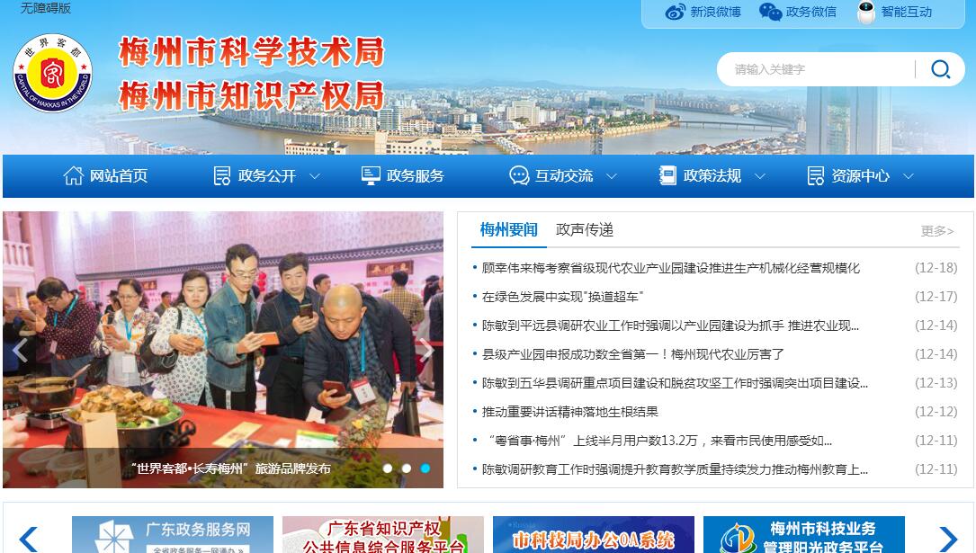 梅州市科学技术局主要职责:(一)贯彻执行国家和省有关科学技术工作、专利工作的方针政策和法规;拟订地方规范性文件和政策措施,并组织实施和监督检查,组织制定专利工作发展规划和计划。会同有关部门提出科技体制改革的政策和措施建议,推进科技体制改革工作,审核相关科研机构的组建和调整,培育发展民办科研机构,优化科研机构布局。(二)会同有关部门提出全市科技发展重大布局、优先领域政策性建议,编制和实施全市中长期科技发展规划和年度计划,组织实施全市重点基础研究、应用研究、开发研究等科技规划,负责统筹协调基础研究、前沿技术研究、重大社会公益性技术研究及关键技术、共性技术研究,牵头组织经济社会发展重要领域的重大关键技术、共性技术攻关。(三)会同有关部门拟订科技重大专项实施办法,提出综合平衡、方案调整和相关配套政策建议,并跟踪和监督实施。(四)承担推进全市创新体系建设的责任;会同有关部门编制全市创新体系建设规划,拟订促进全市知识创新、技术创新的政策措施,制定科研条件保障规划和提出相关政策,推进科技基础条件平台、实验室体系和重点科研基地、产业创新平台、重大创新基地建设和科技资源共享,拟订科技促进企业自主创新的政策措施,会同有关部门组织申报认定创新型企业和自主创新产品。推动高新技术产业化相关技术体系建设,推动企业自主创新能力建设。(五)会同有关部门拟订高新技术及其产业化政策,指导高新技术产业化及应用技术的开发与推广,指导高新技术产业的发展,指导高新技术产业开发区、各类科技示范推广基地的建设,负责高新技术产业企业和高新技术产品的申报,促进科技型中小企业技术创新工作。(六)牵头拟订产学研结合的政策措施,组织实施产学研结合发展规划、年度计划和产学研结合专项资金项目;会同有关部门制定科技成果推广政策,指导科技成果转化工作,组织相关重大科技成果应用示范。(七)组织实施科技促进农村和社会发展的政策措施,会同有关部门推进全市农村信息直通车工程和专业镇科技创新示范试点建设,促进以改善民生为重点的农村建设和社会建设。(八)拟订科技服务业发展的政策和规划,拟订促进技术市场、科技中介组织发展的政策措施,负责技术市场、科技中介组织的指导和监督管理,制定落实科普规划和政策,负责科技评估管理和科技统计管理,推进民营科技工作,推动科技服务体系建立。负责梅州国防科技装备动员相关工作。(九)负责归口管理科学事业费和实施上级下达的科技项目和经费,负责市级新产品试制、中间试验、重大科研项目的补贴经费和科技基金的管理,对实施科技项目的效益进行跟踪管理。(十)负责科学技术奖评审的组织工作,会同有关部门拟订科技人才队伍建设规划,提出相关政策建议。(十一)拟订科技合作与交流的政策措施,组织实施科技合作项目,承办科技合作与交流事宜;牵头开展知识产权工作的对外联络、合作与交流活动。(十二)负责组织协调全市保护知识产权工作,推动知识产权创造、运用、保护和管理体系建设,统筹、协调、指导知识产权战略的实施工作,牵头拟订并协调实施知识产权发展规划和年度计划。(十三)组织开展全市专利行政执法及市场监督管理工作,依法处理和调解专利纠纷、查处专利违法行为,会同有关部门建立知识产权执法协作机制。(十四)负责全市专利工作,贯彻落实专利优惠、奖励政策和措施,组织研究知识产权事业发展战略和有关知识产权方面的重大问题;统筹协调知识产权事宜;指导和管理企业专利工作;组织重大专利技术实施;管理监督专利发展资金;负责专利、技术市场鉴证、认定、登记和管理。(十五)负责科技信息、科技宣传、市科技信息网络管理工作,指导第三产业的科技工作;指导知识产权信息化建设工作。(十六)承办市委、市人民政府和上级业务主管部门交办的其他事项。