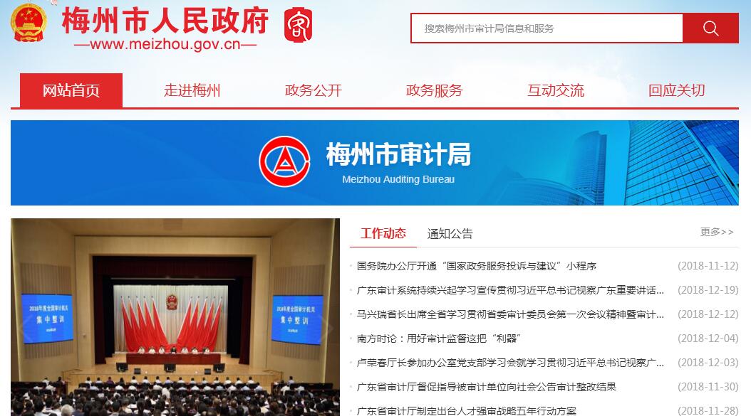 根据《中共梅州市委、梅州市人民政府关于印发〈梅州市人民政府机构改革方案〉的通知》(梅市发〔2009〕63号),设立梅州市审计局,为市人民政府工作部门。其主要职责:(一)贯彻执行国家和省、市有关审计工作的方针政策和法律法规,制定并组织实施审计工作发展规划、专业领域审计工作规划和年度审计计划,对直接审计、调查和核查的事项依法进行审计评价,做出审计决定或提出审计建议。(二)负责对市本级财政收支和法律法规规定属于审计监督范围的财务收支的真实、合法和效益进行审计监督,维护财政经济秩序,提高财政资金使用效益,促进廉政建设,保障国民经济和社会健康发展,对审计、专项审计调查和核查社会审计机构相关审计报告的结果承担责任,并负有督促被审计单位整改的责任。(三)向市人民政府和省审计厅提出年度市本级预算执行和其他财政收支情况的审计结果报告,受市人民政府委托向市人大常委会提出市本级预算执行和其他财政收支情况的审计工作报告、审计发现问题的纠正和处理结果报告,向市人民政府和省审计厅报告对其他事项的审计和专项审计调查情况及结果,依法向社会公布审计结果,向市人民政府有关部门和县(市、区)人民政府通报审计情况和审计结果。(四)直接进行下列审计:1.市本级预算执行和其他财政收支,市本级各部门(含直属单位)预算的执行情况、决算和其他财政收支。2.县(市、区)人民政府预算的执行情况、决算和其他财政收支。3.使用市财政资金的事业单位和社会团体的财务收支。4.市人民政府投资和以市人民政府投资为主的建设项目的预算执行情况和决算。5.市属国有企业和金融机构以及市人民政府规定的市属国有资本占控股或主导地位的企业的资产、负债、损益。6.市人民政府部门管理的和受市人民政府委托由社会团体管理的社会保障基金、环境保护基金、社会捐赠资金及其他有关基金、资金的财务收支。7.省审计厅授权审计的省属驻梅单位和省属企事业单位的财务收支和经济效益,以及国际组织、国际金融机构和外国政府贷款、援助、赠款项目和项目执行单位的财务收支。8.县(市、区)的重大审计事项。9.法律法规规定的应由市审计局审计的其他事项。(五)按规定对县(市、区)人民政府主要负责人和市委、市政府部门主要负责人、市属国有企业及国有控股企业领导人员及依法属于市审计局监督对象的其他单位主要负责人实施经济责任审计。(六)组织实施对财经法律、法规、规章、政策和宏观调控措施执行情况、财政预算管理或国有资产管理使用等与市本级财政收支有关的特定事项进行专项审计调查。(七)依法检查审计决定执行情况,督促纠正和处理审计发现的问题,依法办理被审计单位对审计决定提请行政复议、行政诉讼或市人民政府裁决中的有关事项。协助配合有关部门查处相关重大案件。(八)指导和监督全市内部审计工作和农村集体经济审计工作,核查社会审计机构对依法属于审计监督对象的单位出具的相关审计报告。(九)与县(市、区)人民政府共同领导县级审计机关。依法领导和监督下级审计机关的业务,组织下级审计机关实施特定项目的专项审计或审计调查,纠正或责成纠正下级审计机关违反国家和省、市规定作出的审计决定,按照干部管理权限协管县(市、区)审计机关负责人。(十)承办市委、市人民政府和上级业务主管部门交办的其他审计事项。
