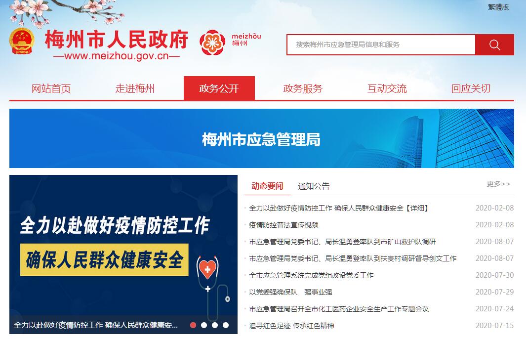 梅州市应急管理局主要职责:(一)贯彻执行国家和省有关安全生产工作的方针政策和法律法规,组织起草全市安全生产规范性文件,指导协调全市安全生产工作,分析和预测全市安全生产形势,发布全市安全生产信息,协调解决安全生产工作中的重大问题。(二)承担市人民政府安全生产综合监督管理的责任。依法行使综合监督管理职权,指导协调、监督检查市人民政府有关部门和各县(市、区)人民政府安全生产工作,监督考核并通报安全生产控制指标执行情况,负责组织全市安全生产大检查和专项督查,根据市人民政府授权,依法组织较大生产安全事故调查处理和办理结案工作,监督事故查处和责任追究落实情况。(三)负责监督管理职责范围内的工矿商贸企业安全生产工作。按照分级、属地原则,依法监督检查工矿商贸生产经营单位贯彻执行安全生产法律法规情况及其安全生产条件和有关设备(特种设备除外)、材料的安全生产管理工作,承担劳动防护用品和安全标志的安全监督检查工作。(四)依法监督管理非煤矿矿山、危险化学品和烟花爆竹安全生产工作。(五)监督检查工矿商贸行业安全生产标准、规程实施工作和重大事故隐患排查治理工作,在职责范围内依法查处安全生产违法行为。(六)负责组织指挥和协调安全生产应急救援工作,综合管理全市生产安全伤亡事故和安全生产行政执法统计分析工作。(七)负责监督检查职责范围内新建、改建、扩建工程项目的安全设施与主体工程同时设计、同时施工、同时投入生产和使用的情况。(八)组织指导并监督特种作业人员(特种设备作业人员除外)的考核工作和工矿商贸生产经营单位主要负责人、安全生产管理人员的安全资格考核工作,监督检查工矿商贸生产经营单位安全生产培训工作,开展安全生产宣传教育工作。(九)指导协调全市安全生产检测检验工作,监督管理安全生产社会中介机构。(十)组织指导协调和监督全市安全生产行政执法工作。(十一)组织拟订安全生产科技规划,指导协调安全生产重大科学技术研究和推广工作。(十二)组织开展安全生产方面的交流与合作。(十三)承担市安全生产委员会的日常工作。(十四)承办市委、市人民政府与上级业务主管部门交办的其他事项。