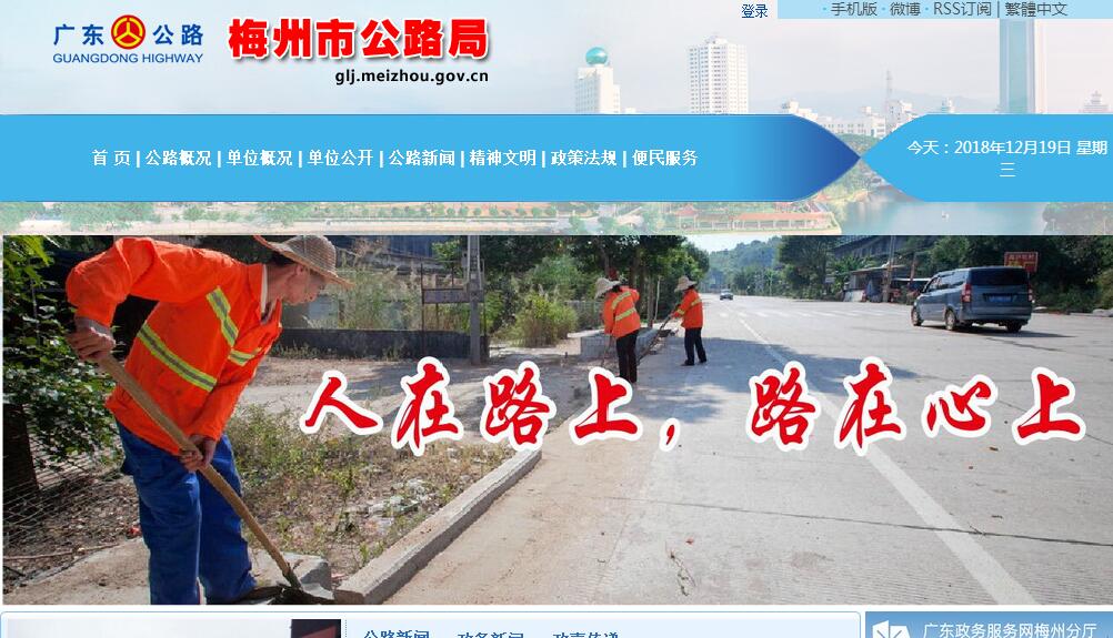 | 网站简介: 梅州市公路局主要职责:(一)贯彻执行《 中华人民共和国公路法》 、《 广东省公路条例》 等法律、法规;按照国家和省交通公路主管部门和市政府的有关规定,参与制订全市公路行业管理制度和管理规范。(二)参与制订全市省养公路发展规划;组织实施经国家、省和市批准的省养公路的建设改造计划。(三)按照分级分类管理的规定,负责全市省养公路建设、改造项目的审核上报及交(竣)工验收工作。(四)负责全市省养公路及其附属设施的建设、养护、路政管理工作;协调全市省养公路交通战备、应急工作。(五)负责全市政府还贷收费公路的收费工作。(六)负责全市省养公路科技项目成果评审及推广应用等工作,促进公路行业科技进步。(七)制定全市省养公路系统人才发展规划;负责公路专业人才的教育培养和职工培训;指导全市省养公路系统精神文明建设;组织实施创建文明样板路工作。(八〕 承办市委、市政府和上级主管部门交办的其他事项。 |