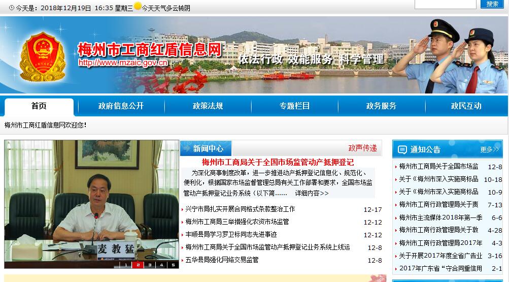 梅州市工商行政管理局主要职责:(一)贯彻执行国家和省、市有关工商行政管理的方针政策和法律法规,起草有关规范性文件,拟订有关政策并组织实施,负责市场监督管理和行政执法的有关工作。(二)负责市场主体登记的管理工作,推进工商注册制度便利化,组织指导全市各类企业、个体工商户、农民专业合作社和从事经营活动的单位、个人以及外国(地区)企业常驻代表机构等市场主体的登记注册,组织实施全市统一标准规范的电子营业执照和全程电子化工商登记管理;研究分析并依法发布市场主体登记注册基础信息,为政府决策和社会公众提供信息服务。(三)组织指导对全市各类企业、个体工商户、农民专业合作社和从事经营活动的单位、个人以及外国(地区)企业常驻代表机构等市场主体及经营行为的监督管理,依法组织和指导查处取缔未领取营业执照擅自从事无需经过许可审批的生产经营活动的行为。(四)承担市场主体信用分类监督管理,组织市场主体开展年度报告和信息公示工作,负责企业信用信息公示平台的管理和使用,组织开展企业公示信息抽查工作,为社会公众提供市场主体信用查询和信用预警等服务。(五)依法承担对流通领域市场行为的风险监测分析和市场交易风险防范,建立并实施重要商品及生产资料的风险评估指标体系、风险监测预警和跟踪制度、风险管理防控联动机制。(六)组织实施便利营商和促进优化营商环境的措施、办法;支持企业经营模式和产业转型升级,服务小微企业、个体工商户发展和转型升级,推动各类市场主体登记后持续健康发展。协助市非公有制经济组织党委开展有关工作,配合全市个体私营企业党建工作。(七)负责依法规范和维护商品交易市场经营秩序工作,负责依法组织监督管理商品交易市场经营行为。负责监督管理和规范网络商品交易及有关服务行为,促进网络商品交易市场健康发展。(八)组织管理商标和特殊标志,依法保护商标专用权,查处商标侵权等违法行为,监督管理商标印制和商标代理,组织实施商标品牌战略。(九)指导广告业发展,负责广告活动的监督管理工作,承担公益广告的规划和有关管理,查处广告违法行为。(十)依法监督管理经纪人、经纪机构及经纪活动;依法组织实施合同行政监督管理,负责管理动产抵押登记,监督管理拍卖行为,依法查处合同欺诈等违法行为。(十一)依法组织查处不正当竞争、走私贩私等经济违法行为。(十二)依法组织查处违法直销、传销案件,依法监督管理直销企业和直销员及其直销活动,协调打击传销联合行动。(十三)负责消费维权及社会监督体系建设工作。负责流通领域商品质量及有关服务监督管理,统筹管理和组织开展全市流通领域商品及有关服务抽查检验工作;指导消费者咨询、投诉、举报受理与处理工作,指导消费者权益保护社会网络体系建设,依法查处违反商品质量法规及商品消费和服务领域中侵害消费者合法权益的行为,依法保护消费者合法权益,促进市场交易环境和消费维权政社共治。(十四)统筹协调指导全市市场监管体系建设,负责市场监管信息平台的管理和使用,负责与行政执法部门的执法协作工作,做好与司法的衔接工作。(十五)指导全市工商行政管理业务工作,负责机关和指导直属单位的干部培训、素质教育、规范化建设相关工作,指导全市工商系统信息化建设相关工作。(十六)承办市人民政府和广东省工商行政管理局交办的其他事项。