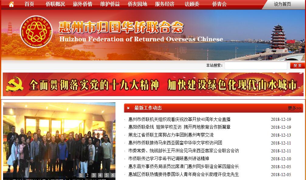 惠州是广东省著名侨乡,有海外华侨华人40万人、归侨2万人、侨眷45万人、港澳同胞50万人、港澳眷属共60万人。海外侨胞主要分布于马来西亚、新加坡、印尼、泰国、缅甸、越南、澳大利亚、美国、英国、加拿大等国家。惠州市侨联成立于1982年12月8日。实行独立设置,编制9人,政协组成单位,是党和政府联系广大归侨侨眷和海外侨胞的桥梁和纽带。主要职能是“群众工作,参政议政、维护侨益、海外联谊”。惠州市侨联下设2个部室(办公室、经济联络部),负责侨联的日常工作。全市三县三区均成立了侨联组织,各级侨联组织共有109个。这些组织在维护侨益、参政议政、加强与海外联系方面,发挥了积极的作用。惠州市侨联围绕市委、市府的工作中心,利用毗邻港澳、海外关系众多、信息资源丰富的独特优势,创新工作思路,利用大侨务资源共享的平台,在招商引资引智工作中做出积极的贡献,受到市委、市府的重视和肯定。惠州市侨联坚持为侨服务的宗旨,积极参政议政,反映海外侨胞和广大归侨侨眷的意见和呼声,对新时期出现的新侨情进行深入的调查研究,提出合理化的建议,供市委、市政府决策时参考。积极维护广大归侨、侨眷的合法侨益,维护社会和谐稳定。通过“走出去,请进来”和其他有效形式,开展对外联谊活动。目前已和世界上20多个国家和地区的100多个华侨华人社团建立了联系,并结织了一批政治上有影响、为我市的三个文明建设,为祖国统一大业服务。开展扶贫济困工作,1997年设立惠州市归侨侨眷福利会,已筹集资金100多万元,每年春节慰问特困归难侨,协助解决贫困归难侨生产生活中的困难。进入新世纪,惠州市侨联将按照中国侨联章程,独立自主创造性地开展工作,根据人民团体的特点,充分发挥侨的优势,带领全市各级侨联组织和广大归侨侨眷,联系广大海外侨胞,为全面建设小康社会、建设惠州现代石化数码名城,率先基本实现社会主义现代化作出贡献。
