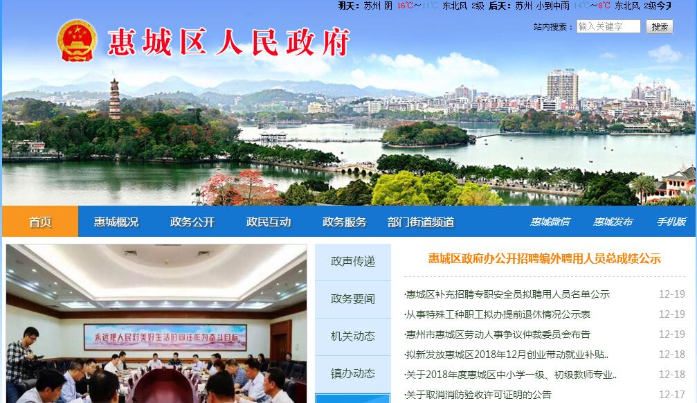 惠城区,是惠州市的市辖区,位于广东省东南部,南临南海大亚湾,与深圳、香港毗邻惠城区总面1170.6平方公里。2017年,惠城区辖桥东、桥西、龙丰、江南、江北、河南岸、小金口、水口等8个街道,三栋、汝湖、马安、横沥、芦洲等5个镇;70个居民委员会、142个村,1202个村民小组。8个街道中,户籍人口最多的是桥西街道,有16.13万人,最少的是小金口街道,仅4.63万人;5个镇中,面积最大的是横沥镇,有318平方公里,最小的是三栋镇,仅67.74平方公里。2017年全区(属地,含市直)地区生产总值(GDP)初步核算为718.25亿元,比上年增长6.2%。其中,第一产业实现增加值21.76亿元,增长4.3%,对GDP贡献率为2.2%,拉动GDP增长0.13个百分点;第二产业实现增加值210.55亿元,增长3.9%,对GDP贡献率为18.8%,拉动GDP增长1.16个百分点;第三产业实现增加值485.95亿元,增长7.3%,对GDP贡献率为79.0%,拉动GDP增长4.88个百分点。三次产业结构调整为3.0:29.3:67.7。2017年,惠城区人均GDP为59825元。惠城区先后获得了“全国电子信息产业基地”、“中国男装名城”、“中国照明电器品牌基地”、“全国最具综合实力中小城市”、“全国投资环境十佳区”、“世博中国年·最具投资价值金融生态区”、“中国可持续发展品牌区和中国最佳生态(人文)宜居区”、“中国最具投资价值旅游强区”、“全国科普示范区”“全国计划生育优质服务先进区”以及“全国科技进步示范区”六连冠、“广东省双拥模范区”八连冠、2017全国综合实力百强区、国家知识产权强县工程示范县(区)、2018年度全国投资潜力百强区、全国科技创新百强区、全国绿色发展百强区等称号。