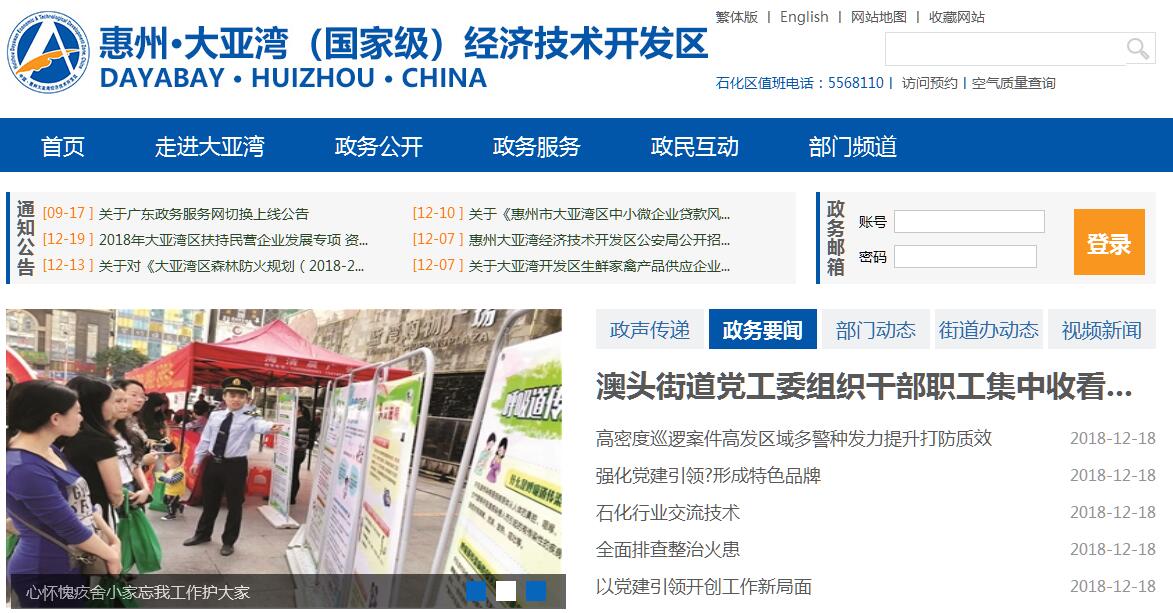 惠州大亚湾(国家级)经济技术开发区于1993年5月经国务院批准成立。辖澳头、西区、霞涌3个街道办事处。陆地面积293平方公里,占惠州市的2.58%。海域面积(含海岛)1319平方公里,占惠州市的29.19%,海岸线63.1公里,占惠州市的22.42%。常住人口20.85万人,占惠州市的4.33%。2017年,实现地区生产总值505.1亿元,增长6%;规上工业增加值465.7亿元,增长6.4%;一般公共预算收入53.1亿元,增长17.4%;税收总额329.3亿元(含海关代征税),增长21.4%。2018年第一季度,实现地区生产总值152亿元,增长13.1%;规上工业增加值145.2亿元,增长17.2%;税收总额(含海关代征税)104.2亿元,增长37.4%;公共财政预算收入14.1亿元,增长31.9%。--区位优势明显。大亚湾开发区地处广东省惠州市南部,毗邻深圳坪山区,距离香港47海里、深圳市中心约60公里、东莞市中心约120公里,拥有良好的投资营商环境和城市依托,是珠三角东岸地区唯一的石油化工基地。--交通便利快捷。航空方面,从大亚湾区到惠州机场只需30分钟车程,到深圳宝安机场只需90分钟车程,到香港国际机场只需90分钟车程。铁路方面,大亚湾至厦深铁路惠州南站只需10分钟车程,有效链接珠三角、长三角、海峡西岸经济区,形成东南沿海3小时经济圈。惠大铁路连接全国铁路网,是京九铁路南端最便捷的出海口。公路方面,惠深沿海高速、惠大高速贯穿大亚湾,形成一纵一横骨干路网,并与深汕、惠盐、广汕、广惠、惠河等高速公路联通。水路方面,拥有国家一类对外开放口岸——惠州港,已开通至东莞虎门、河北唐山、香港和台湾的定期国际国内航线。--产业基础良好。在中海油一期1200万吨炼油及中海壳牌100万吨乙烯以及即将全面投产的炼化二期1000万吨炼油和120万吨乙烯的强力带动下,炼化一体化规模跃升至全国第一;园区制定“招商图谱”,抬高门槛,精准招商,打造“优等生俱乐部”,石化区己落户项目86宗,总投资1726亿元;加上比亚迪、东风本田等一批电子、汽车企业带动,大亚湾区已发展成为石油化工、电子信息、汽车零部件等装备制造业等优势产业集聚发展的珠江口东岸重要的临港工业基地。近年来,大亚湾区把提升区域自主创新能力作为推动经济发展方式转变的重要措施,高新技术产业和战略性新兴产业也取得较快发展。--服务配套完善。大亚湾区始终坚持“政府营造环境、企业创造财富”的发展理念,深化行政审批制度改革,简化审批流程,缩短办理时限,为投资者提供一站式审批、一条龙服务。同时,严格落实国家、省、市对企业的优惠政策,积极出台扶持鼓励产业发展、科技研发、企业做强做大等系列优惠配套措施。--生态环境优越。大亚湾区高度重视生态环保工作。在全市率先实现生态镇、村全覆盖。森林覆盖率达43.7%。大亚湾红树林城市湿地公园入选5个国家城市湿地公园之一,为广东省唯一入选项目。饮用水源达标率100%,近岸海域水质名列全省前茅。2017年全年空气质量优良率98.1%,比2013年提升10.1个百分点,稳居全市前列。中央、省、市对大亚湾的发展高度重视、寄予厚望。大亚湾石化区被列为全国重点发展的石化产业基地,是广东省唯一列入的石化产业基地,2014-2017年连续四年位列“中国化工园区20强”第二,2017年获评国家第一批绿色制造体系建设示范绿色园区、国家循环化改造重点支持园区;省政府通过的环大亚湾新区发展总体规划明确提出要在大亚湾建设世界级石化产业基地;省、市对大亚湾提出要建设世界级石化产业基地和产城人融合发展示范区的要求。当前,大亚湾区正按照中央、省、市对大亚湾发展的定位和要求,加快实施升级发展的“1523”行动【“1”是围绕建设世界级石化产业基地和产城人融合发展示范区1个目标定位;“5”是实施产业优化升级、城市更新提质、社会治理创新、生态文明进步和民生保障改善5大提升工程;“23”是落实23项重点任务】,实施转方式、提质效、促共享“三大举措”,着力打造经济繁荣的活力湾区、开放创新的智慧湾区、环境优美的魅力湾区、和谐安康的幸福湾区“四个湾区”。