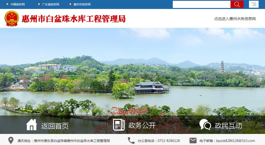 | 网站名称: | 惠州市白盆珠水库工程管理局 | ||