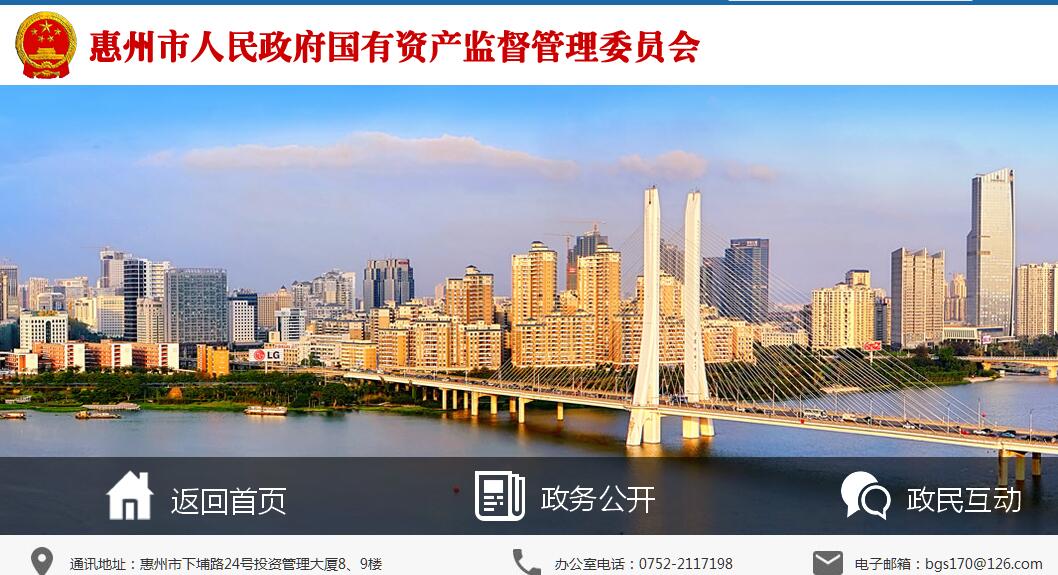 惠州市人民政府国有资产监督管理委员会主要职责:(一)根据市人民政府授权,依照《中华人民共和国公司法》、《中华人民共和国企业国有资产法》等法律、法规以及市人民政府有关规定履行出资人职责。(二)承担监督所监管企业国有资产保值增值的责任。建立和完善国有资产保值增值指标体系,拟订考核标准,通过统计、稽核对所监管企业国有资产保值增值情况进行监管,负责所监管企业工资分配管理工作,制定所监管企业负责人收入分配政策并组织实施。(三)指导推进国有企业改革和重组,推进国有企业的现代企业制度建设,完善公司治理结构,推动市属国有经济布局和结构的战略性调整。(四)通过法定程序对所监管企业负责人进行任免、考核并根据其经营业绩进行奖惩,建立符合社会主义市场经济体制和现代企业制度要求的选人、用人机制,完善经营者激励和约束制度。(五)按照有关规定,代表市人民政府向所监管企业派出监事会和财务总监,负责监事会和财务总监的日常管理工作。(六)负责组织所监管企业上交国有资本收益,参与制定国有资本经营预算有关管理制度和方法,按照有关规定承担国有资本经营预决算编制等有关工作。(七)按照出资人职责,负责督促所监管企业贯彻落实国家安全生产方针政策及有关法律法规、标准等工作。(八)起草国有企业国有资产管理的规范性文件草案,依法指导监督县(区)国有资产管理工作。(九)负责市直企业军转干部的日常管理工作。(十)承办市人民政府和省人民政府国有资产监督管理委员会交办的其他事项。