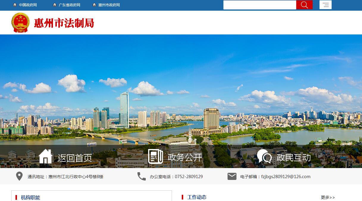 惠州市法制局主要职责:(一)贯彻执行国家和省有关法制工作的方针政策,督促指导全市依法行政工作,调查研究依法行政工作中出现的新情况、新问题,提出推进依法行政的措施和建议。(二)负责市人民政府规范性文件草案的法律审核、上报备案及清理、后评估、编纂工作,承担市人民政府部门规范性文件的合法性审查或组织起草和县(区)人民政府规范性文件的备案审查责任,办理公民、法人和其他组织对规范性文件提出的合法性审查申请事项,监督、指导全市规范性文件审查、审核及清理、后评估、编纂工作。(三)承担行政执法监督的责任。组织和推行行政执法责任制工作,建立、完善和组织实施行政执法监督制度;审查行政执法队伍主体和人员的执法资格,负责行政执法人员综合法律知识培训,承办《行政执法证》的发放和年审工作;负责行政执法投诉举报和行政执法争议协调处理工作。(四)办理向市人民政府申请的行政复议、行政赔偿案件,代理市人民政府行政应诉事务,监督、指导全市行政复议、行政应诉和行政赔偿工作。(五)负责市人民政府法律顾问事务。承办市人民政府重大决策、重要行政措施发布前的合法性审查及市政府领导同志交办的法律顾问事务,代理市人民政府民事应诉事务。(六)指导开展政府法制理论、政府法制工作研究和对外业务交流,负责政府法制工作的宣传和信息化工作。(七)承办省人民政府法制办公室和市人民政府交办的其他事项。(八)负责地方立法权工作。负责统筹协调市政府立法工作,协助市人大常委会制定全市立法规划及年度计划;组织、参与地方性法规及重要政府规章的草拟工作;办理上级立法机构交办的法律、法规和规章草案征求意见;负责市政府规章的解释工作,组织清理、汇编市政府规章;组织开展政府立法调研工作等。