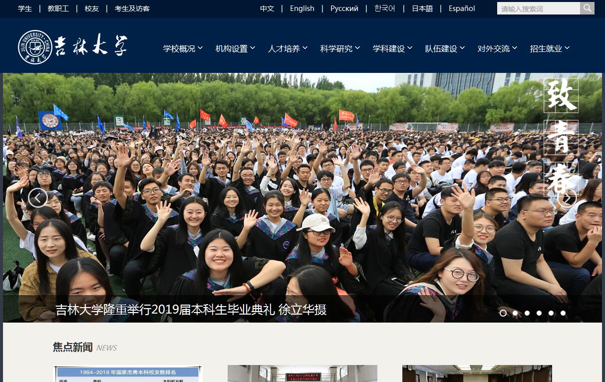 吉林大学是教育部直属的全国重点综合性大学,坐落在吉林省长春市。学校始建于1946 年,1960 年被列为国家重点大学,1984 年成为首批建立研究生院的22 所大学之一,1995 年首批通过国家教委“211 工程”审批,2001 年被列入“985 工程”国家重点建设的大学,2004 年被批准为中央直接管理的学校。2000年,原吉林大学、吉林工业大学、白求恩医科大学、长春科技大学、长春邮电学院合并组建新吉林大学。2004年,原中国人民解放军军需大学转隶并入。学校学科门类齐全,下设46个学院,涵盖哲学、经济学、法学、教育学、文学、历史学、理学、工学、农学、医学、管理学、军事学、艺术学等全部13大学科门类;有本科专业129个,一级学科硕士学位授权点60个,一级学科博士学位授权点48个,硕士学位授权点298个,博士学位授权点264个,博士后科研流动站42个;有一级学科国家重点学科4个(覆盖17个二级学科),二级学科国家重点学科15个,国家重点(培育)学科4个。11个学科(领域)的ESI排名进入全球前1%,其中2个学科排名进入全球前1‰。学校师资力量雄厚,有教师6493人,其中教授2119人,博士生指导教师1384人。