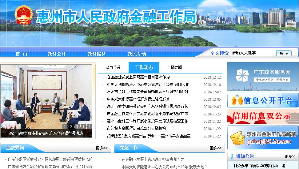 根据《中共惠州市委、惠州市人民政府关于印发〈惠州市人民政府机构改革方案〉的通知》(惠市委发〔2009〕25号),惠州市人民政府金融工作局为正处级单位,设在市人民政府办公室。主要职责包括:(一)贯彻执行国家和省关于金融工作的方针、政策和法律、法规;拟订全市金融产业发展纲要与规划并组织实施;指导全市金融改革创新发展。(二)负责培育和发展农村金融体系,承担对小额贷款公司、融资性担保机构准入、组建、市场监管和风险处置工作,会同有关部门防范化解地方金融国有资产风险。(三)培育、发展多层次资本市场,监管产权交易、柜台交易市场等区域金融市场;负责推进企业改制上市工作,推动企业与风险投资基金对接融资,参与协调发行地方政府债券等相关融资工作。(四)协调和支持省驻惠金融监管机构对各银行、证券、期货、保险、信托等金融机构及行业自律组织的监管以及防范、处置、化解金融机构的金融风险问题,建立金融风险预警体系,组织协调实施金融突发事件应急工作,配合有关部门查处、打击非法金融机构和非法金融业务活动。(五)开展金融对外交流与合作。(六)协调和落实地方人民政府与金融机构的战略合作。(七)承办市人民政府及省人民政府金融办交办的其他事项。