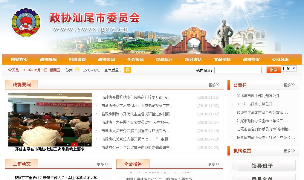 政协广东省汕尾市委员会(简称汕尾市政协)是中国人民政治协商会议的地方委员会,是汕尾市具有广泛代表性的爱国统一战线组织。汕尾市政协于1989年1月24日成立,至今已历经六届。19年来,市政协在中共汕尾市委的领导下,遵照《政协章程》的规定,始终坚持团结、民主两大主题,广泛团结各民主党派、人民团体和各族各界人士,充分发挥“政治协商,民主监督,参政议政”的职能作用,运用政协会议、提案、调研、视察等多种民主形式,组织参加本会的各党派、各团体和各界人士参与各项活动,对全市的大政方针及政治、经济、文化等重大问题进行建言献策,为党委、政府搞好各个时期的中心工作和社会繁荣发展做出了应有的贡献。政协汕尾市第六届委员会由23个界别组成:中国共产党、中国民主同盟、中国农工民主党、中国致公党、九三学社、无党派代表人士、共青团、总工会、妇联、工商联、台联、侨联、文化艺术界、科学技术界、经济界、农业界、教育界、体育界、新闻出版界、医药卫生界、少数民族、宗教界、特别邀请人士;设7个专门委员会:提案委员会、学习与文史资料委员会、经济委员会、社会和法制委员会、科教文卫体委员会、人口资源环境委员会、港澳台侨外事委员会。现有六届政协委员333人,其中常委会组成人员62人(主席、副主席8人,秘书长1人,常委53人)。在总结、继承历届政协的工作经验基础上,六届市政协积极探索履行职能的新途径、新方法,在前进中不断开拓,进一步加强自身建设,充分发挥政协组织的优势,调动一切积极因素,团结一切可以团结的力量,凝聚参与政协各界人士的智慧,在推进全市改革开放和现代化建设,完善社会主义民主和法制,维护社会安定团结的政治局面,繁荣社会主义文化,巩固和发展爱国统一战线等方面,做了大量卓有成效的工作。新的历史时期对政协工作提出了更高更新的要求,汕尾市政协将在多年以来的实践工作的基础上,积极探索,不断进取,为推进全市的社会主义建设和改革开放事业的发展作出新的更大贡献。