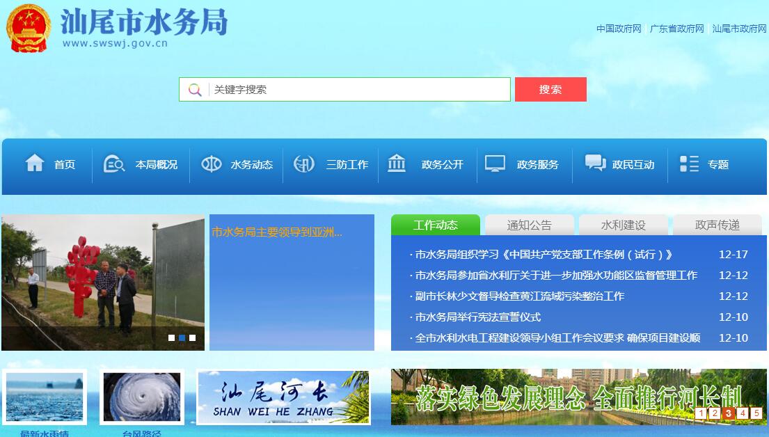 根据中共汕尾市委、汕尾市人民政府《关于印发〈汕尾市人民政府机构改革实施意见〉的通知》(汕委〔2009〕12号),设立汕尾市水务局,为市人民政府组成部门。其主要职责:(一)贯彻执行国家和省市有关水行政管理工作的方针政策和法律法规,拟订水务工作的政策及有关规定。(二)负责保障水资源的合理开发利用,拟订水务战规划,组织审核市内主要江河的流域综合规划和防洪规划,会同有关部门提出水利固定资产投资的规模、方向和市级财政性资金安排的建议并组织实施;按规定权限审核审批有关水利项目技术设计。(三)负责生活、生产经营和生态环境用水的统筹兼顾和保障。实施水资源的统一监督管理,拟订全市水中长期供求规划、水量分配方案并监督实施;组织开展水资源调查评价工作,按规定开展水能资源调查工作;负责重要流域、区域以及重大调水工程的水资源调度;组织实施取水许可、水资源有偿使用制度和水资源论证、防洪论证制度。(四)负责水资源保护工作。组织编制水资源保护规划;组织拟订重要江河湖泊的水功能区划并监督实施;核定水域纳污能力,提出限制排污总量建议;指导饮用水源保护工作;指导地下水开发利用和城市规划区地下水资源管理保护工作。(五)组织、协调、监督、指挥全市防汛防旱防风和防低温雨雪冰冻工作;对重要江河湖泊和重要水工程实施防汛防旱调度和应急水量调度;编制市防汛防旱防风和防低温雨雪冰冻应急预案并组织实施,指导水务突发公共事件的应急管理工作。(六)负责节约用水工作。拟订节约用水政策,编制节约用水规划,制订有关标准,指导和推动节水型社会建设工作。(七)负责管理全市水文工作。协调水文水资源监测;协调对江河湖泊和地下水的水量、水质实施监测,发布水文水资源信息、情报预报和全市水资源公布。(八)组织、指导水利设施、江河水域及其岸线的管理与保护;组织、指导江河、河口和滩涂的综合治理与开发;指导水利工程建设与运行管理;组织实施具有控制性的或跨县(市、区)及跨流域的重要水利工程建设与运行管理;承担水利工程移民管理工作。(九)负责防治水土流失。拟订水土保持规划并监督实施;组织实施水土流失的综合防治、监测预报并定期公告;负责有关大中型建设项目水土保持方案的审批、监督实施及水土保持设施的验收工作;指导全市重点水土保持建设项目的实施。(十)指导农村水利工作。组织协调农田水利基本建设,指导农村饮水安全、节水灌溉等工程建设与管理工作;指导农村水利社会化服务体系建设。(十一)拟订农村小水电发展规划;按规定指导农村水能资源开发工作;指导农村水电、农村电气化和小水电代然料工作。(十二)负责重大涉水违法事件的查处;协调、仲裁跨县(市、区)水事纠纷;指导水政监察和水行政执法;依法负责水务行业安全生产工作;组织、指导水库、水电站大坝和其他水利水电工程的安全监管;指导水务建设市场的监督管理,组织实施水利工程建设的监督。(十三)负责水务科技教育工作;开展水务对外交流与合作;组织开展水务行业质量监督工作。(十四)承办市人民政府和省水利厅交办的其他事项。