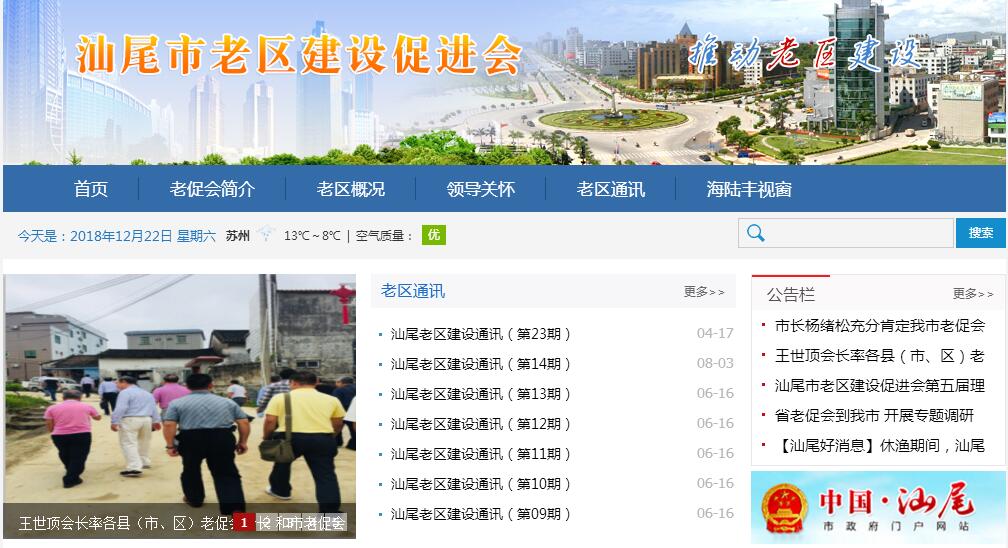 汕尾市老区建设促进会(下称汕尾市老促会)是1997年10月经中共汕尾市委、市人民政府批准正式成立的。由热心革命老区建设的离退休干部、老游击战士、烈士后裔代表、市老区建设领导小组成员单位、我市各行各业各类企业和金融单位为主体,吸收其他社会组织以及专家、学者、企业家、律师、新闻工作者等参加,自愿结成的,具有法人地位的全市性、综合性、非营利性的社会组织。会址设在汕尾市区。本会在市委、市政府的领导下,遵守国家法律和政策,遵守社会功德,为弘扬老区精神为旗帜,以服务老区人民为宗旨,以促进老区发展为己任,全心全意为老区人民服务。充分发挥桥梁、纽带和参谋助手作用,协助党委、政府促进老区建设与发展,为实现建设汕尾小康社会目标作贡献。本会成立将近二十年来,紧紧依靠各级党政和市直各部门,充分发动社会各方力量,深入海陆丰老区调查研究,倾情为老区人民做好事,办实事,赢得老区人民的信任和赞赏。先后荣获“全国先进老促会”、“《中国老区建设》宣传工作”一等奖、二等奖等光荣称号。在全省老促会系统实施老区小学改危工程中,全市改造小学340所,投入资金19961万元(其中争取省拨1.02亿元,占全省总拨款10%,发动社会捐资9761万元)。直接帮助120多个老区行政村修路累计800多公里,争取上级补助金额800多万元。到2015年底为止,省、市、县三级政府筹资6390810元,帮助烈士后裔大专以上的助学对象5666人次;全市累计投入老区乡镇医疗卫生基础设施建设资金将近4000万元,新建、改建、扩建医疗用房达到30000平方米,添购大中型医疗设备48台套总价值2217.5万元;举办各种科技培训班50多期,受训学员5000多名。市老促会认真搞好老区宣传工作,2010年创办了老区宣传刊物《海陆丰视窗》杂志,当年出刊三期后每年出刊二期,2016年在海丰仁荣实业有限公司董事长、本会名誉会长陈介仁先生的支持下,改出季刊。刊物免费赠送给全市各机关和老区人民。同年6月中旬,原市委常委、市政府常务副市长王世顶任市老促会会长。王会长上任后对老区宣传尤为重视,要求继续办好《海陆丰视窗》,同时创办《汕尾老区通讯》和老区网站,加大宣传力度。今后一段时间,市老促会要紧紧围绕市委、市政府的重心工作,着眼于老区精准扶贫、精准脱贫致富奔康,开展精准调研,当好党委、政府的参谋助手。要继续发挥舆论宣传作用,推动各级党委、政府、有关部门与各界人士、企业家等关心支持老区建设,宣传老区建设成就和经验;要继续协助有关部门做好老区革命纪念建筑物和革命文物的抢救、维护工作;继续做好烈士后裔助学工作,支持培训老区建设各类人才,继续搞好科技培训,推广科技成果;充分发挥企业家在老区建设中的积极作用,依法维护企业经营者的合法权益,扩大发展以企业家为主的各界精英入会,进一步把汕尾市老促会做强做大,为汕尾老区建设作出应有的贡献。