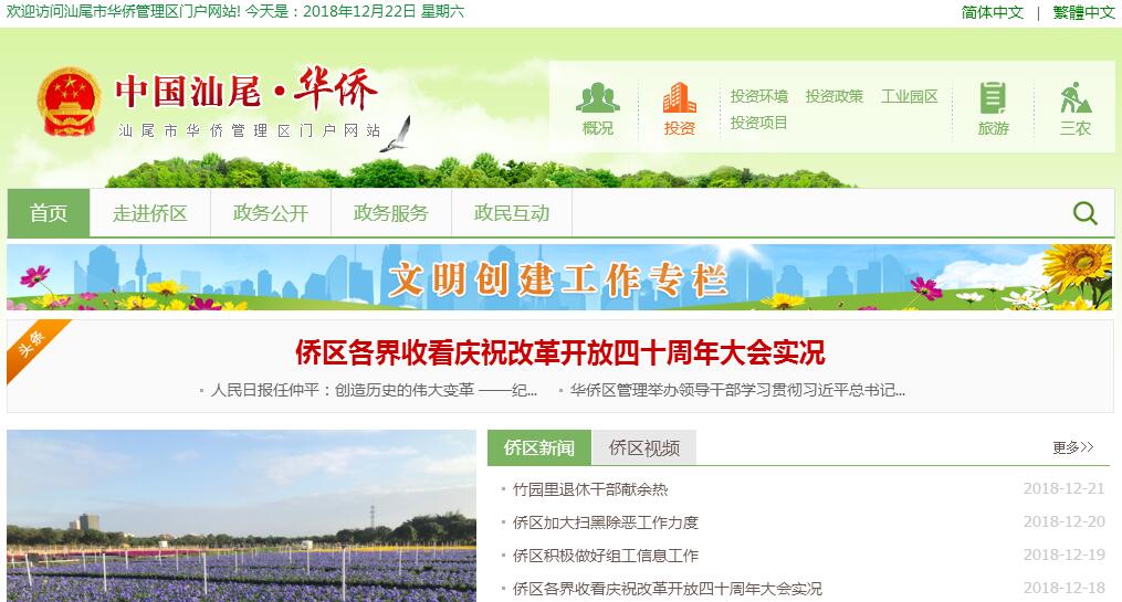 汕尾市华侨管理区前身为陆丰华侨农场,创办于1952年,是国家最早安置归难侨的基地之一,先后于上世纪五十年代、六十年代和七十年代末三次较大规模地接纳安置了来自东南亚等13个国家和地区的归难侨近2万人(目前总人口1.987万人,其中归侨、侨眷约5500人)。1995年4月,经汕尾市委、市政府批准,以陆丰华侨农场为基础,设立“汕尾市华侨管理区”,行使县一级行政、经济管理职能。我区地处汕尾市东部,北纬23.5°,东经115.8°,位于汕头、深圳两大经济特区之间,西与陆丰为邻,东与惠来县接壤,广汕公路、深汕高速公路穿过境内,下辖华兴、饶湖、尖山三个办事处,九个社区(村)。土地面积32平方公里,其中国有土地近20平方公里。近年来,在汕尾市委、市政府的正确领导和上级有关部门的大力支持下,经历届党政班子的共同努力,我区经济、政治、文化、社会、生态文明和党的建设都取得了长足发展,2018年1-3月,全区GDP完成6907万元,比增4.5%。其中:第一产业增加值1665万元,比增5%;第二产业增加值561万元,比增9.8%;第三产业增加值4521万元,比增3.5%。全区已形成六大发展优势:一是区位优势明显。我区位于汕头、深圳两大经济特区之间,交通十分便捷,距深汕高速公路内湖路口、东港路口及惠普高速公路葵潭路口均不足10公里;距潮汕机场仅110公里;距揭阳火车站不足80公里,距厦深铁路陆丰站点18公里、葵潭站点10公里;往广州、深圳、汕头汽车行程分别为3.5小时、2小时 和1小时;海运便利,距直航香港的汕尾港(口岸)和甲子、碣石港分别为76公里和24公里。二是国有土地资源丰富。我区拥有近3万亩国有土地,是全省国有土地资源最丰富的华侨农场之一,已成为我区加快发展的最大资源优势。这里的土地肥沃,地势平坦,集中开阔,加上国有土地征用程序便捷,成本低廉,极有利于大型用地项目的选址落户。三是生态环境清新舒适。我区属亚热带海洋性季风气候,常年雨量充沛、阳光充足、气候宜人,夏季月最高平均气温29℃,冬季月最低平均气温11.2℃,年平均气温22.3℃,雨季集中在6-9月份,全年无霜冻。地势以较低丘陵为主,较为平坦,水资源丰富,水质优良,长期以农业为主,工业排放物少,空气清新,宜居宜业。四是绿色产业初具规模。坚持“绿水青山就是金山银山”的理念,大力推进绿色发展。目前,我区共发展种植奎池油柑5000亩,红杨桃1000亩,莲雾100亩,仙进奉荔枝30亩、沃柑30亩。甜油柑、沃柑、莲雾、火龙果、台湾芭乐等加快引种、扩种,岭南精品水果品牌初步形成。同时,“乡村旅游+特色农业”深入推进,奎池山生态农业园被评为“广东省休闲农业与乡村旅游示范点”和“汕尾市十大热门摄影基地”,印尼果园被评为“汕尾十大热门自驾游目的地”。五是各项基础设施较为完善。水资源丰富,龙潭水库、巷口水库水渠网络遍布全区,灌溉条件良好。已建成了32万立方米蓄水库、日供水1万吨自来水厂及配套设施工程供水量达到360万吨/年,供水水质为Ⅰ类标准,输水管网遍布全区;交通公路网络四通八达,全区农村已全部实现村村通水泥硬底化,群众生产生活条件不断改善,招商引资和经济社会发展环境不断优化。六是人文环境和谐有序。我区民风淳朴,兼容性好,群众整体文化素质较高,13个国家和地区的归侨和多地的群众在此相汇相融,形成了独具的地球村特色风情。侨区虽与周边治安问题相对突出的地区接壤,但常年保持“无贩毒和制毒窝点、无黑恶势力、无制假贩假现象、无安全生产事故”的和谐稳定局面,群众安居乐业、幸福感高。