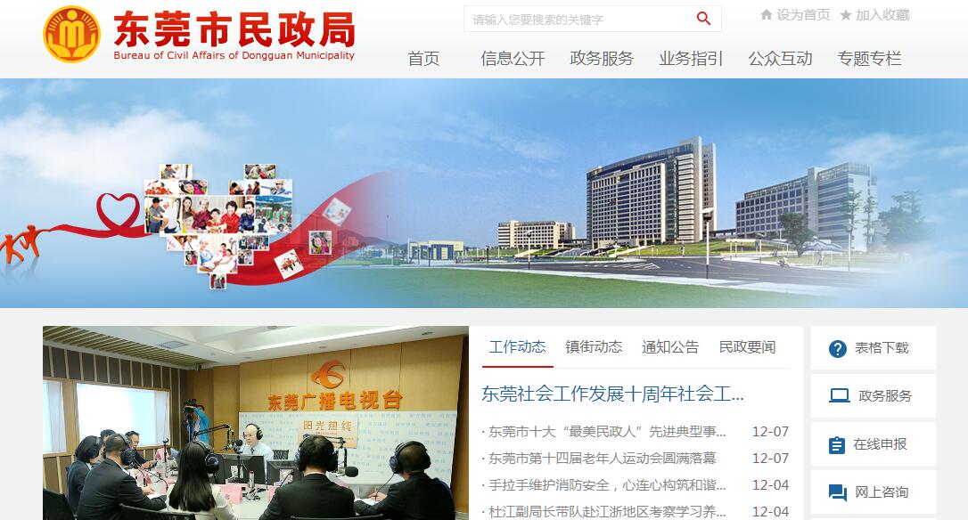 东莞市民政局主要职责:(一)贯彻执行党和国家有关民政工作的方针政策和法律法规,草拟有关地方性规章草案,拟订民政事业发展规划和相关的民政政策,并组织实施和监督检查。(二)负责退役士兵、复员干部和军队移交地方管理的离退休干部、退休士官和军队无军籍退休退职职工的接收安置工作。负责烈士申报、褒扬工作;组织和指导拥军优属拥政爱民工作,(三)负责组织、协调城乡救灾救济工作;负责救灾救济扶贫捐赠款物的接收、分配、管理和监督使用;负责组织自然灾害救助应急体系建设,组织核查并统一发布灾情;负责全市防灾减灾工作。(四)负责城乡居民最低生活保障、医疗救助、临时救助、流浪乞讨及生活无着人员救助工作,完善城乡社会救助体系。(五)负责上级行政区划、行政区域界线和地名管理有关政策的监督实施;负责全市镇级以上行政区域的设立、撤销、调整、更名、界线变更以及政府驻地迁移的审核报批工作;负责市际行政区域界线的勘定和管理工作,指导镇级行政区域界线勘定和管理工作;负责边界争议的调处事务;组织编制地名规划,负责地名命名、更名、销名的审批报批,地名标志的规范设置和维护管理,以及标准地名使用的检查监督等工作。(六)负责基层政权建设工作;指导村(居)民委员会开展民主选举、民主决策、民主管理和民主监督工作,推动村务公开和基层民主政治建设。(七)负责基层管理体制改革和城乡基层群众自治组织建设,协调实施城乡社区建设工作,指导城乡社区服务体系建设。(八)负责推进婚俗和殡葬改革,负责收养登记管理工作,指导婚姻、殡葬、收养、救助服务机构管理工作。(九)负责老年人、孤儿、弃婴(童)、五保户等特殊困难群体权益保障工作,指导残疾人的权益保障工作。(十)负责社会福利工作;负责各类福利事业单位、福利机构、福利生产企业的监督管理,促进慈善事业发展,组织指导社会捐助工作。(十一)负责依法对社会团体、民办非企业单位进行登记和对社会团体、基金会、民办非企业单位进行管理监督。(十二)负责民政事业费年度计划预算、决算和发放管理、检查监督工作。(十三)会同有关部门按规定拟定社会工作发展规划、政策和职业规范,推进社会工作人才队伍建设和相关志愿者队伍建设。(十四)负责社会福利彩票发行销售管理和有奖募捐工作;负责彩票公益金管理、使用和监督。(十五)负责全市学生接送站的登记和管理工作。(十六)承办市人民政府和省民政厅交办的其他事项。