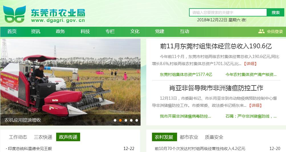 东莞市农业局主要职责:(一)贯彻落实中央、省、市有关农业农村工作的方针政策和法律法规,组织起草有关地方规范性文件,组织开展农业农村经济社会改革与发展重大问题的调查研究并提出政策建议和措施,指导社会主义新农村建设和农村体制改革。(二)拟订种植业、畜牧业、农业机械化等农业有关产业和农村经济发展政策、发展战略、中长期发展规划,经批准后组织实施,参与制定相关涉农政策。(三)承担完善农村经营管理体制工作,研究提出深化农村经济体制改革和稳定完善农村基本经营制度的政策建议,指导农村集体土地承包、耕地经营权流转、承包纠纷仲裁和农村集体资产管理,指导、监督减轻农民负担和村民筹资筹劳管理工作,拟订农业产业化经营的发展规划和政策并组织实施,指导农业社会化服务体系、农村合作经济组织、农民专业合作社的建设与发展。(四)组织落实粮食、生猪等主要农产品生产的相关政策措施,引导农业产业结构的合理调整和产品品质的改善,指导实施农业标准化、规模化生产,提出农业固定资产投资的规模、方向和有关财政性资金安排的意见,提出扶持农业农村发展的财政政策和项目建议;拟订农业开发规划并监督实施,配合财政部门组织实施农业综合开发项目。(五)拟订农产品加工业发展政策、规划并组织实施,促进农业产前、产中、产后一体化发展;研究提出农业产业保护、促进大宗农产品流通和农产品进出口的政策建议,参与拟订农产品专业批发市场体系建设与发展规划,培育、保护和发展农产品品牌,组织协调和实施“菜篮子”工程建设,组织和承接有关农业展览活动。(六)承担提升农产品质量安全水平责任。依法开展农产品质量安全风险评估,发布有关农产品质量安全状况信息,负责农产品质量安全监测,依法管理农业标准化工作,指导农业检验检测体系建设,依法组织实施符合安全标准的农产品认证和农产品质量安全的监督管理,负责奶畜饲养以及生鲜乳生产环节、收购环节的监督管理,负责生猪定点屠宰监督管理。(七)组织、协调农业生产资料市场体系建设。依法开展农作物种子(种苗)、草种、种畜禽、肥料、农药、兽药、饲料、饲料添加剂、生鲜乳、蚕种、动物防疫条件的许可及监督管理,会同有关部门监督实施农业生产资料国家标准,开展兽医医疗器械和有关肥料的监督管理,负责农业机械安全和产品质量监督管理。(八)负责动物重大疫病和农作物重大病虫害监测预警与防控。会同有关部门拟订动植物防疫检疫政策,指导动植物防疫和检疫体系建设,组织、监督动植物的防疫检疫工作,组织重大植物检疫性有害生物监测、普查,组织兽医医政、兽药药政药检工作,负责执业兽医和乡村兽医的管理,负责与动物有关的实验室及其实验活动的生物安全管理工作。(九)承担农业救灾复产工作,监测、发布农业灾情,组织种子、化肥等救灾物资储备和调拨,提出生产救灾资金安排建议,指导农业救灾和灾后恢复生产,承担农业重大突发事件应急管理。(十)拟订农业科技、农技推广的发展规划和有关政策建议,指导现代农业产业技术和技术推广体系建设,组织实施农业科研、成果转化、科技示范和技术推广,组织引进国外农业优良品种与先进技术,负责农业科技成果管理、农业植物新品种保护和农业转基因生物安全监督管理。(十一)会同有关部门拟订农业农村人才队伍建设规划并组织实施,指导农业教育和农业职业技能开发工作,参与组织实施农村实用人才培训和农村劳动力转移就业培训工作,会同有关部门依法实施农业农村人才专业技术资格和从业资格管理。(十二)组织农业资源区划工作,指导农用地、宜农滩涂、宜农湿地、牧草地和农业生物物种资源的保护和管理,拟订耕地及基本农田质量保护与改良政策并指导实施,依法管理耕地质量,牵头拟订农田基本建设规划,指导运用工程设施、农艺、农机、生物等措施发展节水农业。(十三)制定并实施农业生态建设规划,指导农村可再生能源综合开发与利用、农业生物质产业发展a和农业农村节能减排,指导农业面源污染治理有关工作,提出农产品禁止生产区域,指导生态农业、循环农业发展,依法管理外来物种。(十四)管理农业和农村经济信息,会同有关部门监测分析农业和农村经济运行情况,开展相关农业统计工作,综合分析和反映农业、农村、农民工作动态,发布农业和农村经济信息,负责农业信息体系建设,指导农业信息服务,综合协调市直涉农部门和省驻莞涉农单位的有关工作。(十五)组织开展农业经济、技术交流与合作。(十六)负责市内农村扶贫开发和革命老区建设管理工作。(十七)承办市委、市政府和上级农业部门交办的其他事项。