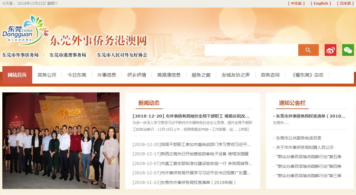 东莞市外事侨务局主要职责:(一)贯彻执行党和国家有关外交、侨务、港澳方面的方针政策和法律法规,负责制定有关工作具体措施和方法,并监督实施。(二)研究外事、侨务、港澳工作重大问题和国家热点、敏感问题;了解、掌握重大国际动态以及与我市缔结友好关系的外国城市动态;组织开展侨务政策、理论和侨务工作重大问题的调查研究;了解掌握反映港澳社会、经济、法律的情况和动向,及时向市政府提出我市加强与港澳合作的建议。(三)组织、协调、实施重要出访活动;组织接待外国访莞的国家、党宾、议会外宾、友好人士、工商界领袖、知名华侨、港澳人士以及其他重要来宾;接待和管理来莞从事公务活动的各国外交人员和外国记者;负责统筹协调有关部门和社会团体涉侨工作,负责指导、开展对华侨华人、港澳同胞及其社团的联谊和服务工作。(四)承担我市与港澳高层互访的协调工作,负责办理与港澳官方、半官方及重要民间往来,负责港澳莞籍社团的联谊和协调等工作;负责做好我市落实CEPA协议的各项工作,促进我市与港澳在经贸、科技、教育、文化、卫生、金融等领域的交流和合作。(五)协调处理重大涉外突发事件,外国公民、法人在莞发生的各类重大案件,以及本市在境外公民、机构的安全保护等相关事务;配合有关部门研究处置涉侨突发事件,指导镇街侨务工作。(六)根据上级有关部门的授权,负责有关单位因公出国管理工作,承担因公出国签证、出国(境)证明、赴港澳及本市因公护照的管理工作;负责对镇(街)和市属单位因公出访的办证业务进行培训和指导;负责汇总、审核和制定本市年度因公出访计划,检查上一年度因公出访计划执行情况;审核、审批邀请外国人来莞商务考察及工作、外国学生来华读书的有关事宜。(七)负责本市国际友好城市的有关工作;指导民间对外友好交往工作;协调本市与相关国家间及国际区域间交流合作事务;负责与外国外交、领事机构的业务联系和交涉事宜;指导市直各部门和各镇街的外事业务和重要外事活动,监督执行外事纪律。(八)指导归侨侨眷工作,依法组织协调归侨侨眷和华侨华人在国内合法权益的维护工作,负责华侨华人、港澳同胞捐赠审核及监督管理工作,协助有关部门做好归侨侨眷代表人士的人事安排工作;负责《东莞乡情》侨刊的编辑、发行工作;指导、推动涉侨宣传,涉侨文化交流与华文教育、涉侨经济、科技合作与交流等工作,协调涉侨经济投诉工作。(九)承办省外事办、省侨办、省港澳办和市委、市政府交办的其他有关事项。