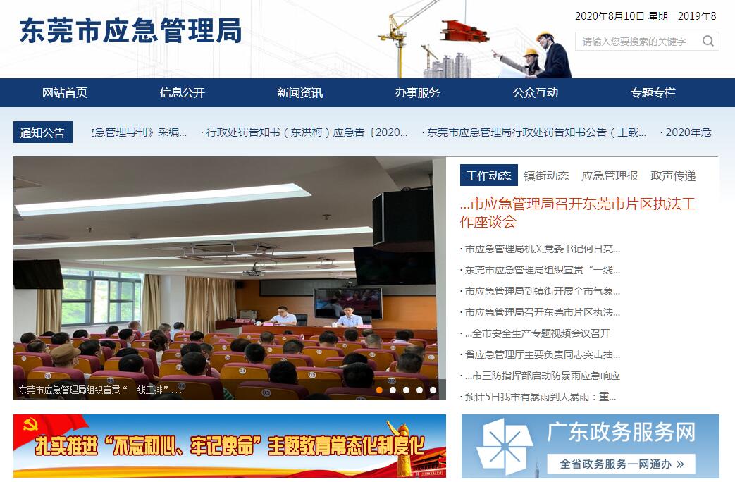东莞市应急管理局主要职责:(一)负责应急管理工作,指导全市各园区、镇(街道)和各部门应对安全生产类、自然灾害类等突发事件和综合防灾减灾救灾工作。负责安全生产综合监督管理和工矿商贸行业安全生产监督管理工作。(二)拟订应急管理、安全生产等政策,组织编制市应急体系建设、安全生产和综合防灾减灾规划,拟订相关规范性文件、政策并组织实施。(三)统筹全市应急预案体系建设,建立完善事故灾难和自然灾害分级应对制度,综合协调应急预案衔接工作,组织编制市总体应急预案和安全生产类、自然灾害类专项预案,组织开展预案演练,推动应急避难设施建设。(四)牵头建立统一的应急管理信息系统,负责信息传输和共享,建立监测预警和灾情报告制度,健全自然灾害信息资源获取和共享机制,依法统一发布灾情。(五)组织指导应对突发事件工作,组织指导协调安全生产类、自然灾害类等突发事件应急救援,承担市应对重大灾害指挥有关工作,综合研判突发事件发展态势并提出应对建议,协助市委、市政府指定的负责同志组织重大灾害应急处置工作。(六)统一指挥协调全市各类应急专业队伍,建立应急协调联动机制,推进指挥平台对接,提请衔接解放军和武警部队参与应急救援工作。(七)统筹应急救援力量建设,负责森林火灾扑救、抗洪抢险、地震和地质灾害救援、生产安全事故救援等专业应急救援力量建设,指导园区、镇(街道)及社会应急救援力量建设,协调综合性应急救援队伍建设。(八)指导协调森林火灾、水旱灾害、冰冻、台风、地震和地质灾害等防治工作,负责自然灾害综合监测预警工作,指导开展自然灾害综合风险评估工作。(九)组织协调灾害救助工作,组织指导灾情核查、损失评估、救灾捐赠工作,按权限管理、分配救灾款物并监督使用。(十)依法行使安全生产综合监督管理职权,指导协调、监督检查市政府有关部门和各园区管委会、镇(街道)人民政府(办事处)安全生产工作,创新和加强安全生产综合监管。(十一)按照分级、属地原则,依法监督检查工矿商贸生产经营单位贯彻执行安全生产法律法规情况及其安全生产条件和有关设备(特种设备除外)、材料、劳动防护用品的安全生产管理工作。依法组织并指导监督实施安全生产准入制度。负责危险化学品安全监督管理综合工作和烟花爆竹经营企业安全生产监督管理工作。(十二)依法组织指导生产安全事故调查处理,监督事故查处和责任追究落实情况。组织开展自然灾害类突发事件的调查评估工作。(十三)开展应急管理等方面的交流与合作,组织参与安全生产类、自然灾害类等突发事件的跨区域救援工作。(十四)制定应急物资储备和应急救援装备规划并组织实施,牵头建立健全应急物资信息平台和调拨制度,在救灾时统一调度。(十五)负责应急管理、安全生产宣传教育和培训工作,组织指导应急管理、安全生产的科学技术研究、推广应用和信息化建设工作。(十六)完成市委、市政府和省应急管理厅交办的其他任务。