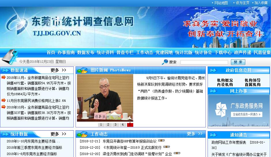 东莞市统计局主要职责:一、贯彻执行国家、省和市有关统计工作的方针政策、方法制度和法律法规,拟订和实施统计工作规定、规划和统计调查计划;承担组织和协调全市统计工作,确保统计数据真实、准确、及时的责任;监督检查统计法律、法规在我市的实施;组织领导和监督检查全市各镇街、各部门的统计和国民经济核算工作,指导全市统计工作。二、组织实施国民经济核算体系和统计指标体系,执行国家和省的统计标准和基本统计报表制度,拟订适合我市经济、社会发展的地方统计调查项目、调查方案、统计标准,并组织实施。三、会同有关部门拟订重大市情市力普查计划、方案;组织实施全国人口、经济、农业等重大国情国力普查,汇总、整理和提供有关市情市力方面的统计数据;组织开展全国投入产出调查和R&D资源清查工作。四、组织实施全市农林牧渔业、工业、建筑业、批发和零售业、住宿和餐饮业、房地产业、物流业、服务业等统计调查,收集、汇总、整理和提供有关调查的统计数据,综合整理和提供旅游、对外经济贸易、交通运输、邮电通信、教育、体育、卫生、社会保障、公用事业、城市建设等全市性基本统计数据。五、组织实施全市能源、投资,科技、人口、劳动力、社会发展基本情况等统计调查,收集、汇总、整理和提供有关调查的统计数据,综合整理和提供消费、价格、收入、资源、环境、房屋、景气等全市性基本统计数据。六、统一核定、管理、提供、公布全市性基本统计资料,定期发布国民经济和社会发展情况的统计信息,组织建立服务业统计信息管理、共享和发布制度;对国民经济、社会发展、科技进步、资源环境和人口劳动力等情况进行统计分析、预测和监督;向市委、市政府及有关部门提供统计、信息和咨询服务。七、依法审批或者备案全市各镇街、各部门统计调查项目,指导专业统计基础工作、统计基层业务基础建设,建立健全统计数据质量审核、监控和评估制度,开展对重要统计数据的审核、监控和评估。八、建立健全和管理全市统计信息系统和统计数据库系统,指导各镇街、各部门统计数据库和网络的基本标准和运行规则的实施工作,指导全市统计信息化系统建设。协助市委、市政府及有关部门开展各种考核评价工作。九、管理直属事业单位,协助镇街管理综合统计负责人,监督统计队伍建设,指导全市统计专业技术队伍建设,协同有关部门组织实施统计专业技术资格考试、职称评聘、从业资格认定工作;组织指导全市统计人员教育和业务培训。十、承办市人民政府和上级统计调查部门交办的其它事项。