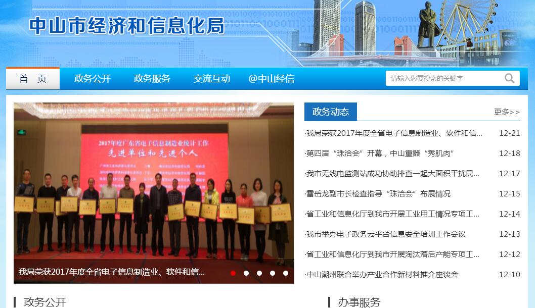 中山市经济和信息化局主要职责是:(一)贯彻执行国家、省、市有关经济和信息化的方针政策和法律法规,拟订工业、信息化领域的政策和法规性文件;研究提出全市新型工业化发展战略,推进信息化和工业化融合、军民融合发展。(二)拟订并组织实施工业、信息化领域发展规划、计划及有关产业政策;组织实施相关产业技术规范和标准;指导工业企业加强质量管理,牵头实施商标品牌带动战略;指导工业、相关生产服务业、软件和信息服务业领域加强安全生产工作。(三)监测分析工业、信息化领域运行态势并做好相关信息发布,统筹协调解决相关重大问题;组织协调全市电力、油品和重点物资运输能力等供应;负责相关行业应急管理的综合协调工作。(四)执行有关固定资产投资政策,编制工业、信息化领域企业技术改造、技术创新等专项扶持资金年度使用计划并组织实施,审核、上报和办理需经国家、省和市审批、核准、备案的企业技术改造、技术创新投资项目,提出促进工业、信息化领域企业技术改造、技术创新投资的措施和意见。(五)指导工业、信息化领域的技术进步、技术创新、技术引进、消化吸收和再创新、重大技术装备国产化、重大技术装备研制和设备招标工作,推进相关科研成果产业化,推动工业、信息化领域电子商务应用与发展。(六)负责全社会节能工作,拟订并组织实施能源节约、循环经济、资源综合利用和促进清洁生产的专项规划及政策措施;协调以节能降耗为主要内容的新产品、新技术、新设备、新材料的推广应用工作;推动循环经济系统工程建设;组织协调节能环保产业发展。(七)拟订并组织实施全市产业转移总体规划和政策措施、产业转移工业园区中长期发展规划和政策措施;承担产业转移工业园区的综合协调和提质发展、扩能增效工作。(八)牵头负责企业数据信息采集、统计、分析、报告等企业情况综合工作;牵头做好培育大型骨干企业工作;负责中小微企业和民营经济发展的宏观指导和服务,综合协调有关部门拟订促进中小微企业和民营经济发展的政策措施;协调解决中小微企业和民营经济发展中的有关重大问题。(九)统筹推进全市信息化工作,协调指导经济社会领域的信息化应用;推进信息技术、互联网、电子商务在工业领域的普及应用,推进信息化和工业化融合;组织协调网上办事大厅建设工作,统筹推进电子政务;协调推进信息化基础设施建设。(十)研究拟订并组织实施大数据战略、规划和政策措施;协调、组织实施国家和地方数据技术标准;协调经济社会数据资源的组织管理;指导推进社会经济各领域大数据开发应用;协调解决有关重大问题。(十一)协助推进国家、省、市重点信息化工程建设,负责信息安全的统筹规划和协调管理,协调信息安全保障体系建设。(十二)配置和管理无线电频谱资源,依法监督管理无线电台(站);负责无线电监测、检测、干扰查处工作,协调处理电磁干扰事宜,维护空中电波秩序,依法组织实施无线电管制。负责无线网络基础设施建设的规划、协调和管理,协调通信管线、站点、公共通信网规划,推进服务信息网络的资源共享和互联互通。(十三)负责国防科技工业的综合协调和管理,指导国防科技工业的民参军、军转民工作;组织指导民用部门军品配套工作;负责对民用爆炸物品生产、销售安全的监督管理。履行禁止化学武器国际公约的有关监管工作。(十四)指导协调工业、信息化领域的对外交流与合作。(十五)承办上级交办的其他事项。