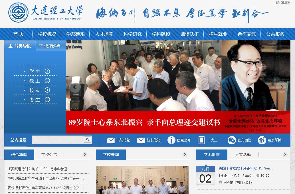 大连理工大学是中国共产党在新中国成立前夕,面向中国工业体系建设亲手创办的第一所新型正规大学。大连理工大学是教育部直属全国重点大学,也是国家“211工程”和“985工程”重点建设高校。学校以培养精英人才、促进科技进步、传承优秀文化、引领社会风尚为宗旨,秉承“海纳百川、自强不息、厚德笃学、知行合一”的精神,致力于创造、发现、传授、保存和应用知识,勇于担当社会责任,服务国家,造福人类。大连理工大学1949年4月建校,时为大连大学工学院;1950年7月大连大学建制撤销,大连大学工学院独立为大连工学院;1960年10月被确定为教育部直属全国重点大学;1986年4月设立研究生院;1988年3月更名为大连理工大学;1996年启动实施“211工程”建设,教育部、辽宁省、大连市共建大连理工大学;2001年启动实施“985工程”建设,教育部、辽宁省、大连市重点共建大连理工大学;2003年被中央确定为中管干部学校;2012年正式启动领军型大学建设工程。2012年12月教育部正式批准大连理工大学建设盘锦校区,该校区依照“统筹规划、错位发展、坚持标准、创新模式”的指导思想建设,与主校区同标准、同档次、同水平办学。2017年9月,经国务院批准,入选世界一流大学A类建设高校。学校现有教职工4321人,其中专任教师2650人;学校有中国科学院和中国工程院院士12人、瑞典皇家工程院院士1人、兼职教师中的两院院士30人,国务院学位委员会学科评议组成员11人,“千人计划”入选者30人,“长江学者”奖励计划特聘教授32人、讲座教授11人、青年学者12人,国家杰出青年基金获得者33人,国家“万人计划”入选者24人(其中科技创新领军人才18人,哲学社会科学领军人才2人,教学名师2人,青年拔尖人才2人),“973计划”项目首席科学家10人,“973计划”青年科学家专题项目首席科学家2人,百千万人才工程国家级人选15人,国家优秀青年科学基金获得者21人,教育部跨世纪优秀人才基金获得者17人,教育部“新世纪优秀人才支持计划”入选者123人,全国高等学校教学名师奖获得者4人,辽宁省高等学校教学名师奖获得者31人;博士生导师726人,专任教师中正高级职称808人,副高级职称1098人。学校现有本科生25380人,硕士生10537人,博士生4836人。学校以人才培养为根本任务,本科生教育与研究生教育并重,已形成以理工为主,理、工、经、管、文、法、哲、艺术等协调发展的多学科体系。学校设有研究生院,7个学部【6个管理重心在学部,1个管理重心在学院(含3个正处级建制学院)】,8个独立建制的学院、教学部,3个专门学院和1所独立学院;盘锦校区设有基础教学部和7个学院;开发区校区有3个学院。有一级学科国家重点学科4个(力学、水利工程、化学工程与技术、管理科学与工程,涵盖15个二级学科),二级学科国家重点学科6个(计算数学、等离子体物理、机械制造及自动化、结构工程、船舶与海洋结构物设计制造、环境工程),二级学科国家重点(培育)学科2个。现有29个一级学科博士点,134个二级学科博士点,43个一级学科硕士点,229个二级学科硕士点,25个博士后科研流动站,还有工商管理硕士(MBA,含EMBA)、公共管理硕士(MPA)、建筑学硕士、工程(博士、硕士)、金融硕士、应用统计硕士、艺术硕士、翻译硕士、工程管理硕士、新闻与传播硕士、城市规划硕士、汉语国际教育、体育等13个类别专业学位授予权以及高校教师在职攻读硕士学位授予权。学校设有87个本科专业,现有在校生的本科专业82个,目前调整为77个本科专业进行招生,其中国家级特色专业23个。有4个国家级教育、教学基地(国家工科化学教学基地、国家大学生文化素质教育基地、国家集成电路人才培养基地、国家理科基础科学研究和教学人才培养基地),8个国家级实验教学示范中心(基础化学实验教学中心、工程训练中心、电工电子实验教学中心、基础物理实验教学中心、土木水利实验教学中心、文科综合实验教学中心、化工综合实验教学中心、机械工程实验教学中心),3个国家级虚拟仿真实验教学中心(化学虚拟仿真实验教学中心、电工电子虚拟仿真实验教学中心、车辆工程虚拟仿真实验教学中心),7个国家级教学团队,是国家实施工程教育改革十所试点学校之一,国家首批大学生创新性实验计划试点学校之一,全国首批深化创新创业教育改革示范高校,首批教育部“卓越工程师教育培养计划”的试点高校之一。学校的工程学和化学学科入选世界一流学科建设名单,优势学科资源丰富、研究实力雄厚。建有1个国家级2011协同创新中心(辽宁重大装备制造协同创新中心),3个国家重点实验室(海岸和近海工程国家重点实验室、精细化工国家重点实验室、工业装备结构分析国家重点实验室),3个国家级工程研究中心(船舶制造国家工程研究中心、电子政务模拟仿真国家地方联合工程研究中心、先进装备设计与CAE软件开发国家地方联合工程研究中心),4个国家级工程实验室(工业装备节能控制技术国家地方联合工程实验室、桥梁与隧道技术国家地方联合工程实验室、制造管理信息化技术国家地方联合工程实验室、消防与应急救援国家工程实验室(共建)),1个国家大学科技园(大连理工大学国家大学科技园),1个国家级技术转移中心(大连理工大学国家技术转移中心),1个国家级技术中心(大连理工大学国家振动与强度测试中心),1个国家知识产权战