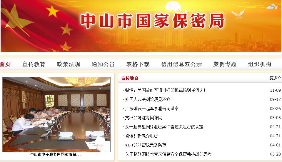 | 网站简介: 中山市国家保密局主要职责:(一)地级以上市设置市委保密委员会,受本级党委领导,负责统一领导本行政区域内的保密工作,并在省委保密委员会指导下开展工作。(二)市委保密委员会在主任领导下开展工作,副主任、专职副主任协助主任工作。(三)市委保密委员会主任由市 委副书记担任,副主任由市政府常务副市长,市委秘书长,市政府秘书长,市委办公室(厅)分管保密工作的副秘书长(或副主任)担任;专职副主任由市保密局长 担任;委员由市纪检、组织、宣传、政法、党校、教育、科技、公安、安全、财政、人事、经贸、信息产业、国有资产管理、军分区等部门的负责同志担任;委员单 位可根据工作需要适当调整(上述职务任职人选及委员单位由市委保密委员会提请市委批准确定)。(四)市委保密委员会下设办公室,承担其日常工作。市政府下设市保密局。市委保密委员会办公室与市保密局合署办公,实行一个机构、两块牌子。(五)根据工作需要,市委保密委员会可下设专业性保密小组,具体负责领导和协调某一方面的保密工作。小组为非常设机构,由市委保密委员会成员、保密委员会办公室工作人员和有关部门的人员组成。 |
