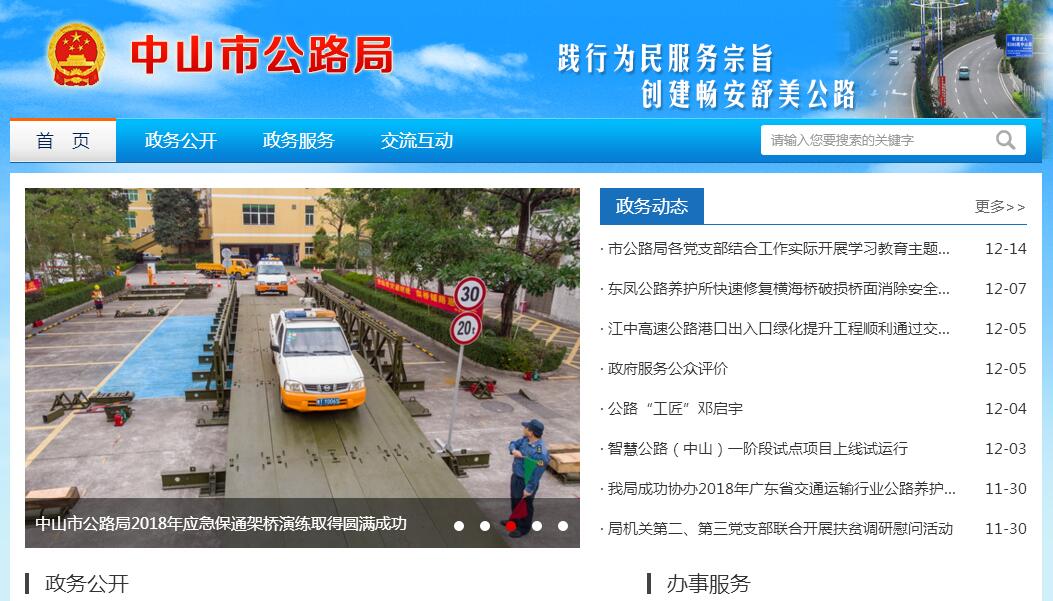 中山市公路局是中山市交通运输局归口管理的行政类事业单位,业务接受省公路管理局行业管理,负责对市域国省道干线省养公路的养护、建设、管理,其主要职责:1、宣传贯彻执行《中华人民共和国公路法》、《中华人民共和国公路管理条例》、《中华人民共和国公路安全保护条例》、《广东省公路条例》等法律法规,按照国家和省、市交通主管部门的有关规定,拟订本市境内省养公路(下称省养公路)养护规划及年度计划,并组织实施。2、参与编制省养公路发展规划;组织实施经国家和省、市批准的省养公路建设计划。3、负责省养公路及其附属设施的建设、改造、养护、管理等工作。4、负责省养公路的路政管理及执法(路政行政许可、路政巡查、检查和制止违反公路法等法律法规的行为);监督、指导本系统养护所开展路政巡查工作。5、参与指导农村公路建设、养护和路政管理及安全生产工作。6、负责编制省养公路成品油消费税替代性返还和增长性补助收入资金的投资计划。7、负责省养公路安全生产管理,负责公路应急物资储备及应急处置工作。8、负责公路科技项目成果和新技术、新工艺、新材料、新产品的推广应用,促进公路行业科技进步;负责公路信息化建设。9、制定本系统人才发展规划,负责本系统内职工队伍建设和各级领导班子、后备干部的考核任免;组织公路文化建设;组织实施创建文明样板路工作。10、承办上级交办的其他事项。