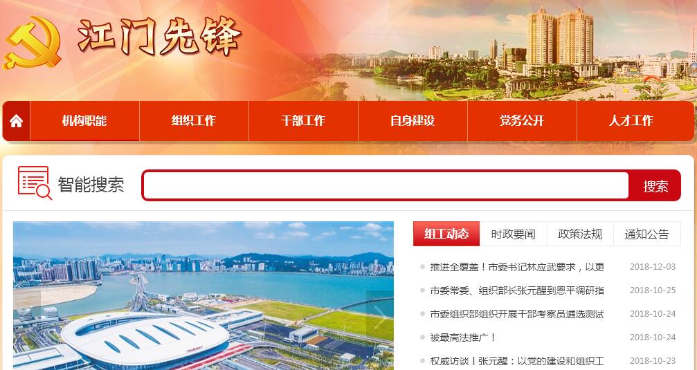 江门市委组织部是江门市委主管组织工作、干部工作和人才工作的综合职能部门。主要职责是贯彻执行党中央有关组织工作的路线、方针、政策;组织实施上级有关组织、干部、人才工作的法规及党员、干部、人才管理规划。研究和指导党组织建设,探索和指导基层和各类经济组织中党组织的设置和活动方式;加强和完善党内生活制度建设,协调、规划和指导党员教育工作和党建理论研究,主管党员的管理和发展工作。考察各市区和市直各部门以及其他列入市委管理的领导班子,提出调整、配备的意见和建议,审批、办理市管干部的任免、工资、待遇、退(离)休;指导领导班子的思想作风建设;备案审核和宏观管理我市各级党组织协助市委管理的干部;承办部分干部的调配、交流及安置事宜。贯彻落实干部队伍建设的政策,综合管理培养选拔年轻干部、后备干部、女干部、党外干部和少数民族干部工作。指导和落实党的组织制度和干部人事制度的改革,制订或参与制订组织、干部、人事工作的制度。综合指导党的机关,人大、政协机关,群众团体和民主党派机关等参照公务员法管理单位的工作。检查督促组织、干部工作,及时向市委反映重要情况、提出建议;检查监督下级党委(党组)及其组织人事部门选拔任用领导干部工作。制订干部教育培训的规划和有关制度,协调、指导、检查全市干部教育培训工作,负责全市各层次有关干部及优秀企业家的培训。选拔管理市管优秀专业技术拔尖人才。负责组织、指导、检查、督促和规划全市党员干部现代远程教育工作。负责市党代会和市委要求党代表参加的有关会议和活动的组织工作。承办市委和省委组织部交办的其他事项。