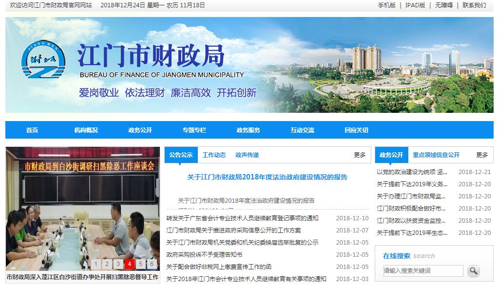根据《中共江门市委 江门市人民政府关于印发〈江门市人民政府机构改革方案〉的通知》(江发〔2009〕16号),设立江门市财政局,为市人民政府工作部门。根据《印发江门市财政局主要职责内设机构和人员编制规定的通知》(江府办[2010]24号),江门市财政局主要职责如下:(一)贯彻执行国家、省和市有关财政、税收工作的方针政策和法律法规,组织起草财政、税收、政府采购、行政事业单位国有资产管理、资产评估、财务会计、政府债务管理等方面的地方性法规、规章草案。(二)拟订财政发展战略、中长期财政规划,参与分析预测宏观经济形势,参与制定各项宏观经济政策,提出运用财税政策实施宏观调控、综合平衡社会财力和推进基本公共服务均等化及主体功能区规划的建议,执行中央与地方、国家与企业的分配政策。(三)承担本级各项财政收支管理的责任。负责编制年度本级预决算草案并组织执行;受市人民政府委托,向市人民代表大会报告本级和全市预算及其执行情况,向市人民代表大会常务委员会报告决算;制定行政事业单位开支标准、定额,审核批复本级部门(单位)的年度预决算,完善转移支付制度,并组织实施。(四)制定全市财政和预算收入计划,管理和监督各项财政收入,负责组织耕地占用税、契税的征收和管理。(五)负责本级非税收入及各项政府性基金管理。拟订彩票管理制度,监管彩票市场,按规定管理彩票资金;管理政府债务、政府主权外债业务,防范财政风险;管理财政票据,管理财政预算内行政机构、事业单位和社会团体的非贸易外汇,参与监管住房保障和住房公积金。(六)组织制定本市国库管理制度、国库集中收付制度及财政总预算会计核算制度,负责本级财政资金调度和财政总预算会计工作,制定政府采购政策、制度并监督管理,监管本级行政事业单位会计核算工作。(七)负责制定行政事业单位国有资产管理制度。负责本级行政事业单位和行政单位未脱钩经济实体、事业单位创办的具有法人资格的企业等国有资产监管;承担对重点行政事业单位委派财务总监的工作;组织拟订国有资本经营预算制度,负责本级国有资本经营预算编制、执行和监督,组织开展企业、行政事业单位等会计决算报表及公共资源统计分析评价工作。(八)负责各项本级财政专项资金的安排和监督管理,编制本级社会保障预决算草案并组织执行,管理本级财政社会保障支出,监管社会保障资金,拟订社会保障资金财务制度、基本建设财务制度、企业财务制度。(九)参与财政性资金项目安排总量研究,组织调度财政性基本建设资金,参与审核财政性资金投资项目工程概算,承担财政性资金投资项目工程预算、结算和竣工财务决算审核工作,对财政性资金建设项目实施财务监管,负责制定代建项目财务管理制度。负责农业综合开发管理工作,拟订农业综合开发管理制度;组织编制农业综合开发计划及中长期规划;承担财政性农业综合开发资金安排及管理等工作。(十)监督检查财税等方面法律法规和政策的执行情况,检查、处理、反映财政收支管理中的重大问题,提出加强财政管理的政策建议,承担财政支出绩效管理工作。(十一)管理全市会计工作,依法指导和监督注册会计师和会计师事务所的业务,指导和管理社会审计工作。(十二)承办市人民政府和省财政厅交办的其他事项。