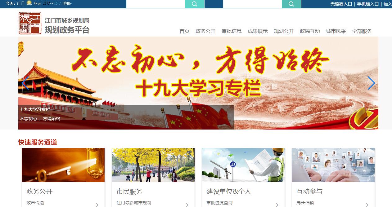 江门市城乡规划局成立于1995年,是市人民政府组织部门。其主要职责:(一)贯彻执行国家和省有关城乡规划的方针、政策、法律、法规及规章,拟订并组织实施城乡规划地方性法规、规章、规范性文件。(二)负责组织编制全市城镇体系规划和市区的城市总体规划、控制性详细规划、城乡建设专项规划。(三)负责台山市、开平市、鹤山市、恩平市城市总体规划的审查,指导有关城乡规划的编制、审批和管理。(四)负责市区有关建设项目的选址、用地规划、工程规划、乡村规划审批,核发《建设项目选址意见书》、规划条件、《建设用地规划许可证》、《建设工程规划许可证》、《乡村建设规划许可证》和《建设工程规划条件核实通知书》。(五)负责指导全市村镇规划管理工作,负责台山市、开平市、鹤山市、恩平市中心镇及市区各镇总体规划的审查,指导和监督村镇规划的编制与实施。(六)负责对全市规划设计市场、规划测绘市场和规划地理信息工作的监督管理工作,负责全市城乡规划科技进步、信息交流、技术培训工作;负责规划技术档案的管理。(七)负责指导、监督各直属行政机构做好有关市区城乡规划行政管理工作。(八)承担市城乡规划委员会的日常工作。(九)承办市政府、上级有关部门和部派、省派规划督察员交办的其他事项。