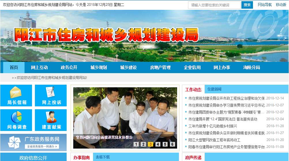 阳江市住房和城乡规划建设局主要职责:(一)贯彻执行国家、省有关住房和城乡规划建设事业的方针、政策和法律、法规,拟订全市建设事业的方针、政策、规范性文件以及相关的发展战略并指导、组织实施。(二)负责全市住房制度改革与发展工作;负责推进城镇低收入家庭住房保障工作;会同有关部门做好市级保障性住房资金安排并组织实施;负责住房公积金和其他住房资金监督管理,确保公积金和其他住房资金的有效使用和安全;会同有关部门拟订住房公积金政策并组织实施,制定住房公积金缴存、使用、管理和监督制度。(三)负责全市房地产业管理。承担规范房地产市场秩序、监督管理房地产市场的责任;拟订全市房地产行业发展规划和产业政策;指导全市城镇住宅建设工作;负责房地产企业资质管理工作;负责房地产开发、房屋权属管理、房屋租赁、房屋面积管理、房地产中介管理、物业管理、房屋征收拆迁管理、直管公房管理、房屋安全鉴定管理工作;负责代征本行业税费工作。(四)负责建筑市场监督管理工作。负责建设行业各类企业资质的管理工作;指导全市建筑活动,负责建设工程招标投标活动的监督管理,核发《建设工程施工许可证》;指导监督建设工程标准定额的实施;负责建设工程质量安全监管,负责工程竣工验收备案和住宅小区的综合验收;组织参与工程质量安全事故的调查处理。(五)负责和指导全市城乡规划。组织编制市域城镇体系规划,指导监督全市城镇体系规划和全市城乡规划的编制与实施;负责本市城市总体规划、分区规划、控制性详细规划及专项规划的编制、审核和审批依照控制性详细规划编制的修建性详细规划,并实施管理;负责本市勘察测绘、规划设计行业的管理;参与土地利用总体规划的审核;负责城市地理信息系统的建设与管理;负责城市建设档案管理;指导检查县(市、区)城建档案管理工作。(六)负责本市城市规划建设用地和各项建设工程的规划管理工作,核发《建设项目选址意见书》、《建设用地规划许可证》和《建设工程规划许可证》,并监督、检查城乡规划实施情况;参与建设项目可行性研究和设计任务书的报批工作。(七)负责全市城乡建设;指导和监督全市(市区除外)城镇市政和公用事业及园林绿化、市容环卫的建设管理;负责燃气行业管理;负责风景名胜区的监督管理及其规划和建设项目的审核;会同有关部门审核、申报历史文化名城等工作;负责全市市政和公用事业、园林绿化等企业资质管理工作。(八)拟订全市建设科技、人才发展规划;负责建设行业相关执业资格的报名及注册工作;推广应用建设新技术、新材料、新工艺、墙材革新,推进建筑节能减排;负责发展散装水泥和商品混凝土及现场搅拌混凝土的管理工作;负责国家强制性建设技术标准、规范和规程的贯彻执行;指导行业参与人才和智力的引进,组织行业学术交流。(九)负责市政府投资的市属非经营性项目代建管理工作;指导和监督县(市、区)政府投资的非经营性项目代建管理工作。(十)开展住房和城乡规划建设方面的对外经济技术交流与合作。(十一)承办市人民政府与省住房和城乡建设厅交办的其他事项。