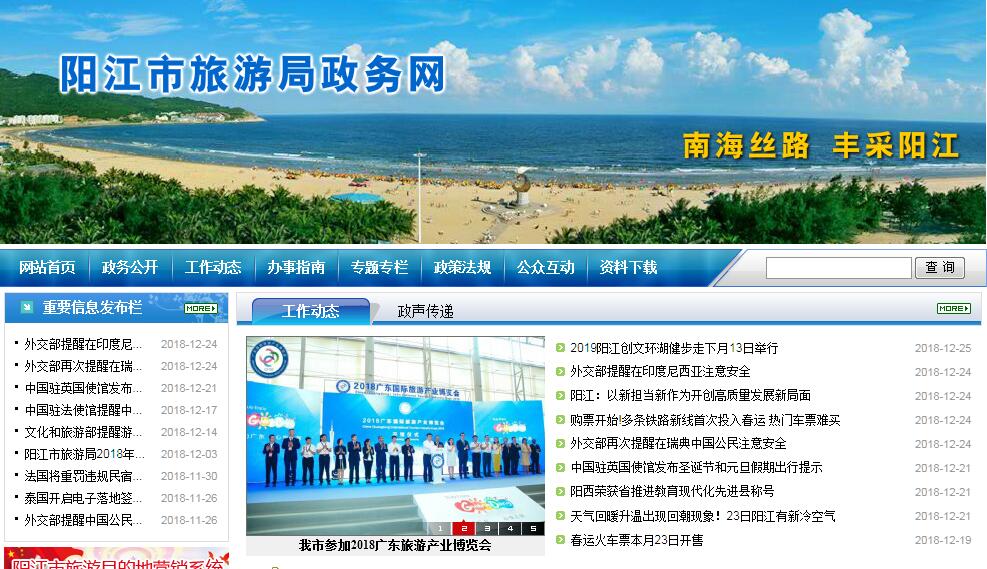 根据《广东省机构编制委员会办公室关于调整阳江市人民政府机构的函》(粤机编办发〔2017〕29号),设立阳江市旅游局,为阳江市人民政府工作部门。其主要职责:(一)贯彻执行国家、省、市有关旅游工作的方针政策和法律法规,统筹协调全市旅游业发展,制定全市旅游发展战略、规划、政策,起草有关地方性法规、规章草案并组织实施,指导各县(市、区)旅游工作。(二)研究和推进旅游综合改革,协调旅游安全、旅游应急救援、节假日旅游、红色旅游工作,引导休闲度假,协调和推动国民旅游休闲计划实施。(三)制定国内旅游、入境旅游和出境旅游市场开发战略并 组织实施,组织阳江旅游整体形象的对外宣传和重大推广活动,负责国内、国际旅游合作和交流事务。(四)组织市内旅游资源普查、规划、开发和相关保护工作,引导旅游业社会投资,引导旅游产品开发和旅游制造业发展,监测旅游经济运行,负责全市旅游统计工作及行业信息发布。(五)负责监督管理旅游服务质量和市场秩序,组织实施旅游区、旅游设施、旅游服务、旅游产品等标准工作,依法负责有关旅游业务的审核、审批工作和出入境旅游管理工作,指导旅游行业精神文明建设和诚信体系建设,指导行业组织的业务工作。(六)组织拟订和实施旅游信息化建设发展规划,推动旅游与信息化融合发展,会同有关部门推进全市旅游公共服务体系规划、建设和管理工作。(七)贯彻落实国家、省赴港澳台旅游政策,开展对港澳台旅游市场推广工作和旅游合作交流事务。(八)制定并组织实施旅游人才规划,指导旅游教育培训工作,会同有关部门指导实施旅游从业人员职业资格标准和等级标准工作。(九)承办市人民政府和省旅游局交办的其他事项。
