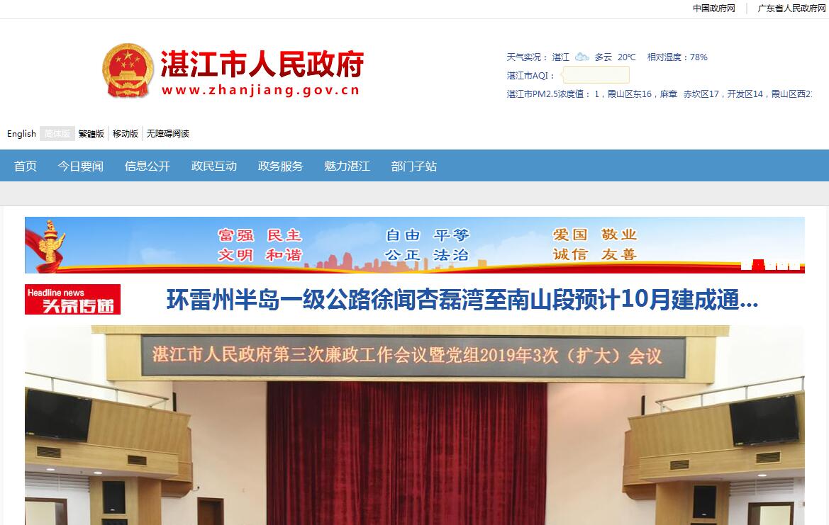 湛江,旧称“广州湾”,别称“港城”,是广东省辖的地级市,位于中国大陆最南端雷州半岛,广东省西南部,粤桂琼三省区交汇处,东濒南海,南隔琼州海峡与海南省相望,西临北部湾,背靠大西南,东北与茂名市相连。全市人口830多万,面积1.32万平方公里,辖4个区、3个县级市和2个县,拥有1个国家级经济技术开发区(国家级高新区)和3个功能区。地处北回归线以南的低纬地区,属热带和亚热带季风气候,终年受海洋气候调节,冬无严寒,夏无酷暑。亚热带作物及海产资源丰富,海鲜产品更是闻名全国。湛江海陆空交通发达,是粤西和北部湾城市群中心城市,是中国大陆通往东南亚、欧洲、非洲和大洋洲航程最短的港口城市,湛江是中国海军南海舰队机关所在地。湛江是1984年全国首批14个沿海开放城市之一,也是首批“一带一路”海上合作支点城市,先后获得 “全国综合实力百强城市”“中国优秀旅游城市”“国家园林城市”“全国双拥模范城市”“全国绿化达标城市”“中国十佳绿色城市”“中国城乡建设范例城市”“中国十大低碳生态城市”“中国十佳绿色生态城市”“中国十大休闲城市”“中国人居环境范例城市”“中国特色魅力城市”“中国海鲜美食之都”“中国对虾之都”“SUC可持续发展先锋城市”“国家卫生城市”和“广东省卫生城市”“广东省文明城市”等荣誉称号。国务院批复《北部湾城市群发展规划》,湛江被列为城市群“一核两极”之一的中心城市;省政府发布《广东省沿海经济带综合发展规划》,湛江被定位为省域副中心城市 。湛江有六大城市特色:(一)湛江是得天独厚的港口城市。湛江港是粤西和环北部湾地区最大的天然深水良港,港池开阔,岸线绵长,屏幛良好,浪静水深,终年不冻。已建有30万吨级深水航道、两个30万吨级陆岸油码头和20万吨级铁矿石码头,直接通航的国家和地区100多个,初具区域性国际航运、物流中心规模。《全国沿海港口布局规划》将湛江港确定为我国西南沿海地区港口群的主体港,湛江港的地位和优势进一步凸现。湛江港不仅是物流枢纽,而且凭借与国际原油、铁矿石产区海运近的有利条件,形成独有的、颇具竞争力的优势,成为临港重化工业布局的最佳选择。除湛江港本港外,雷州半岛沿岸还有一批优良的中、小港口,形成配套互动的港口群。(二)湛江是交通发达的枢纽城市。湛江是我国南大门,处于承东启西、沟通南北、连接海内外的重要枢纽位置。在国内外区域经济合作发展步伐加快的形势下,湛江的区位优势在更加广阔的领域全面突显。随着区域经济合作的深入,湛江已从珠三角的边缘转变为泛珠三角的中心地带;随着西部大开发的推进,湛江作为西南进出海主通道的作用将全面发挥;随着中国—东盟自由贸易区的建立,湛江成为我国连接东盟各国的最佳海上桥头堡;随着全球经济一体化进程的加快,湛江作为我国大陆通往东南亚、非洲、欧洲和大洋洲航程最短的口岸城市,迎来了广阔的发展前景。湛江拥有海运、铁路、公路、航空、管道等综合运输体系,是全国海上运输的主枢纽港,也是全国45个公路运输枢纽之一和全省4个铁路运输枢纽之一,境内有广湛、渝湛、沈海三条高速公路交汇,茂湛铁路、广湛高速铁路、环雷州半岛公路正在建设中,合浦至湛江、汕头至湛江高速公路和琼州海峡跨海通道正在加快前期工作,2012年全面启动市区成环、海湾成环、半岛成环,市外通高铁、县县通高速、镇镇通快速、村村通公路的“三环四通”大交通工程,将形成大港口阵容、大交通格局、大城市架构、大开放气势。凭借发达的立体交通优势和枢纽区位优势,湛江港口的经济腹地已从传统的西南地区扩大到更为广阔的中西部地区。湛江因此成为粤西和西南地区重要的物流中心,连年被《福布斯》杂志评为中国大陆最佳商业城市、中国大陆最适宜发展物流的25座城市之一,被世界杰出华商协会和中国商业联合会评为“中国百佳投资城市”。(三)湛江是资源丰富的热带滨海城市。湛江拥有丰富的热带亚热带作物资源,是我国重要的糖蔗、水果、蔬菜和最大的桉树、剑麻等热带作物生产基地,著名的菠萝、香蕉、芒果、红橙之乡。海洋资源十分丰富,水产品产量连续多年居广东省首位,是全国最大的对虾交易中心和加工出口基地,全国最大的海水养殖珍珠基地。境内已发现多类矿藏33种、矿产地155处,最有开发价值的是硅藻土、澎润土、泥炭土、高岭土等“四土”资源,濒临湛江的南海北部大陆架盆地是世界四大海洋油气聚集中心之一。与高度开发的地区相比,湛江拥有相对丰富的土地和劳动力资源,具有明显的后发优势。此外,湛江还拥有全球两个、中国唯一的玛珥湖——世界地质公园湖光岩和火山峡谷群,拥有我国面积最大的红树林国家级自然保护区、近海面积最大的珊瑚自然保护区和“海上国宝”——中华白海豚第二大种群区,等等。(四)湛江是新兴港口工业城市。经过近年来实施“工业立市、以港兴市、生态建市”发展战略,着力发展工业,全市第二产业占GDP的比重已达到44%,初步形成临港石化、近海油气开发、电力、造纸、农海产品加工、饲料、纺织、电器机械八大支柱产业,特别是石化、能源等重化工业发展迅速,比重显著上升,成为最重要的经济增长极和拉动全市经济发展强有力的杠杆。以电饭煲为主导产品